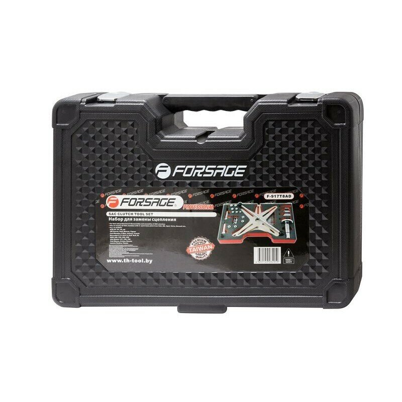 Набор инструментов для замены сцепления 39пр, в кейсе " Premium" FORSAGEНабор приспособлений замены сцепления системы SAC (саморегулирующаяся) .Комплект приспособлений для сцеплений SAC предназначен для быстрой и профессиональной установки / снятиясаморегулирующегося сцепления SAC (Self Adjusting Clutch).Набор приспособлений подходит для всех типов саморегулирующихся сцеплений практических любых марок автомобилей.Комплектация :1. Прижимное приспособление - 2 шт.2. Центральный болт - 1 шт.3. Вспомогательные болты - 2 шт и шайбы - 12 шт.4. Приспособления для центровки - 3 шт.5. Оправки - 3 шт.6. Приспособление для переустановки крышки сцепления - 1 шт.7. Рукоятки - 2 шт.8. Гайки для резьбовых болтов №9 – 4 шт.9. Резьбовые болты:3 вида - 4 шт.1 вид - 8 шт