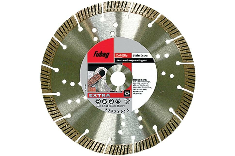 Алмазный отрезной диск Stein Extra Fubag 31300-4 является сменным элементом для плиткорезов и бензорезов. Применяется для сухого реза натурального и искусственного камня, гранита, керамики, гипсокартона, армированного бетона и различных строительных материалов. Высота сегментов — 15 мм.Нет недостатковАлмазный диск очень легко режет камень, гранит, керамику. Своих денег стоит. Покупайте смело.