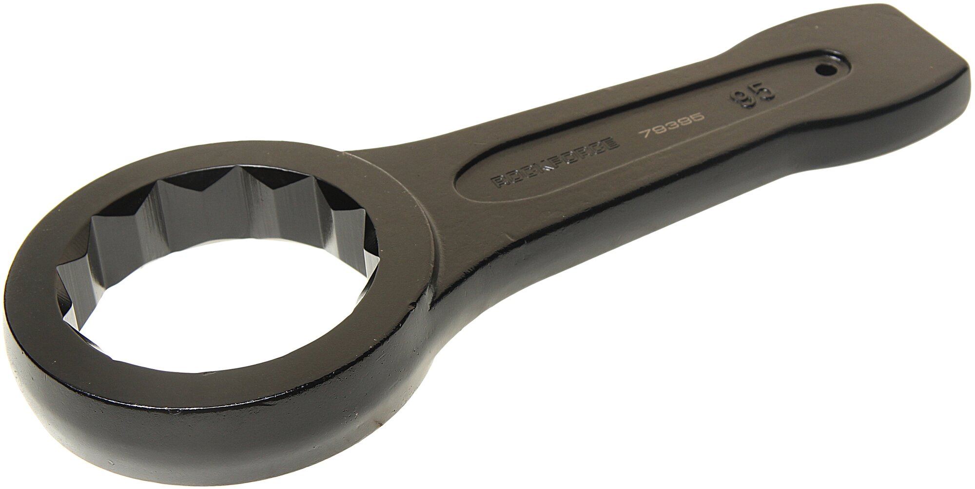 Накидной ударный односторонний ключ 95мм L-370мм ROCKFORCE разработан для прикипевшего или тугого крепежа. Для работы с ударным инструментом любого типа на конце ключа есть специальная площадка, которая распределяет энергию удара и переводит ее на крепеж.