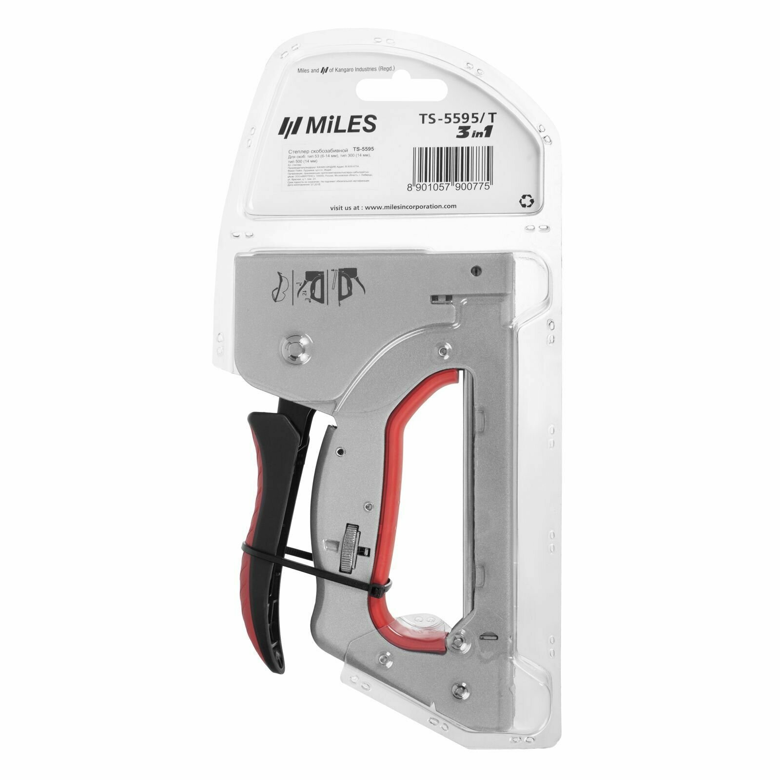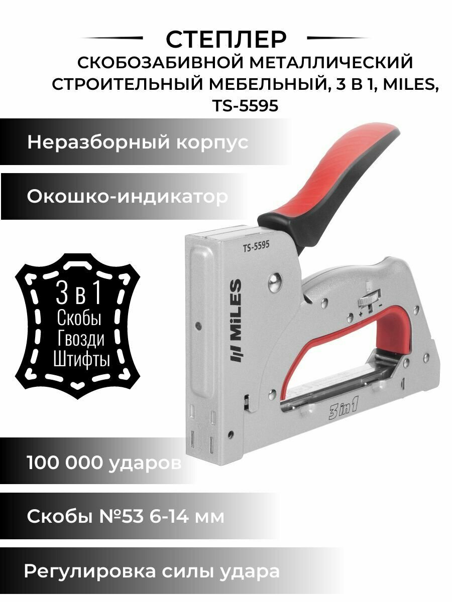 Степлер Miles "TP-5561", 3 в 1, с механизмом спускового крюка