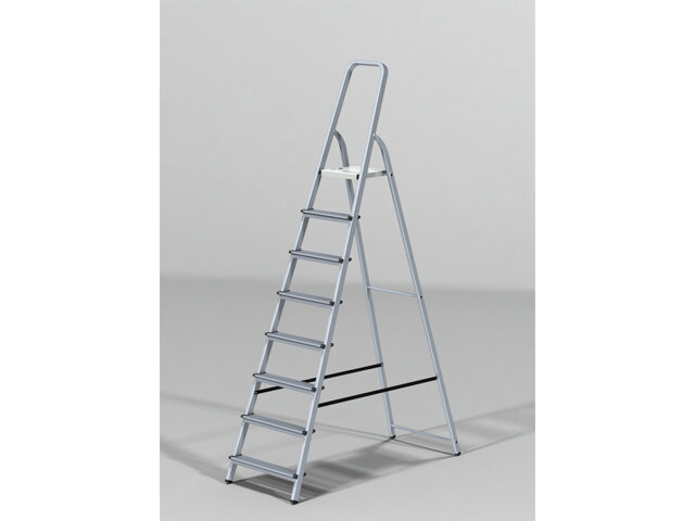 - Обычная алюминиевая лестница. Широкий профиль. Пластиковые "пятки". Лёгкая. Ножки ровные, не шатается. Устойчивая. Отличная покупка за 17 баксов.