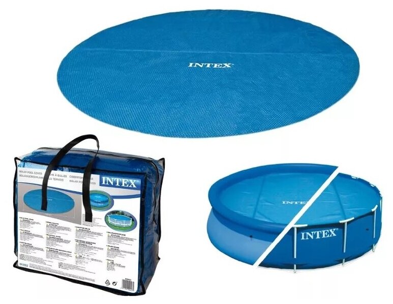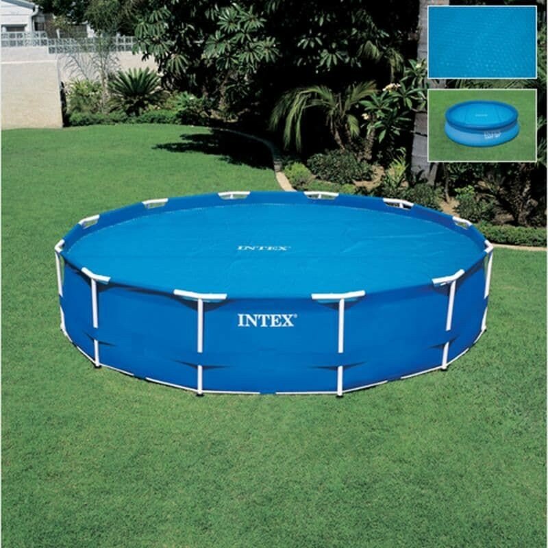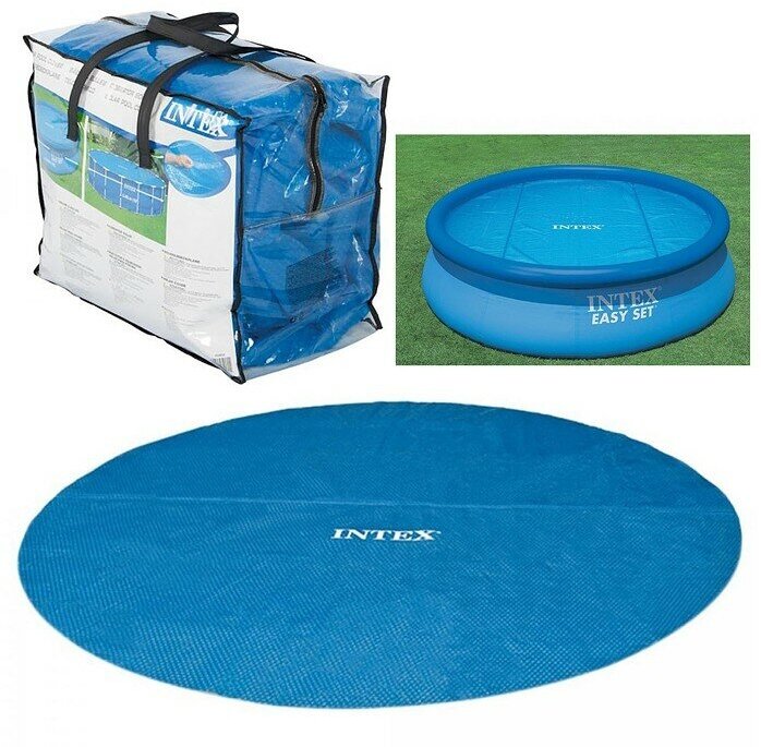 У меня бассейн диаметром 305 см. Закрывает поверхность бассейна полностью, зазора нет. Защищает от инородных тел отлично. Обогревающий эффект особо не заметен.