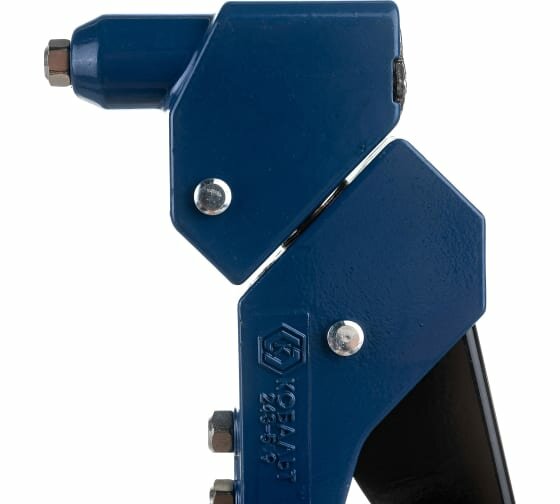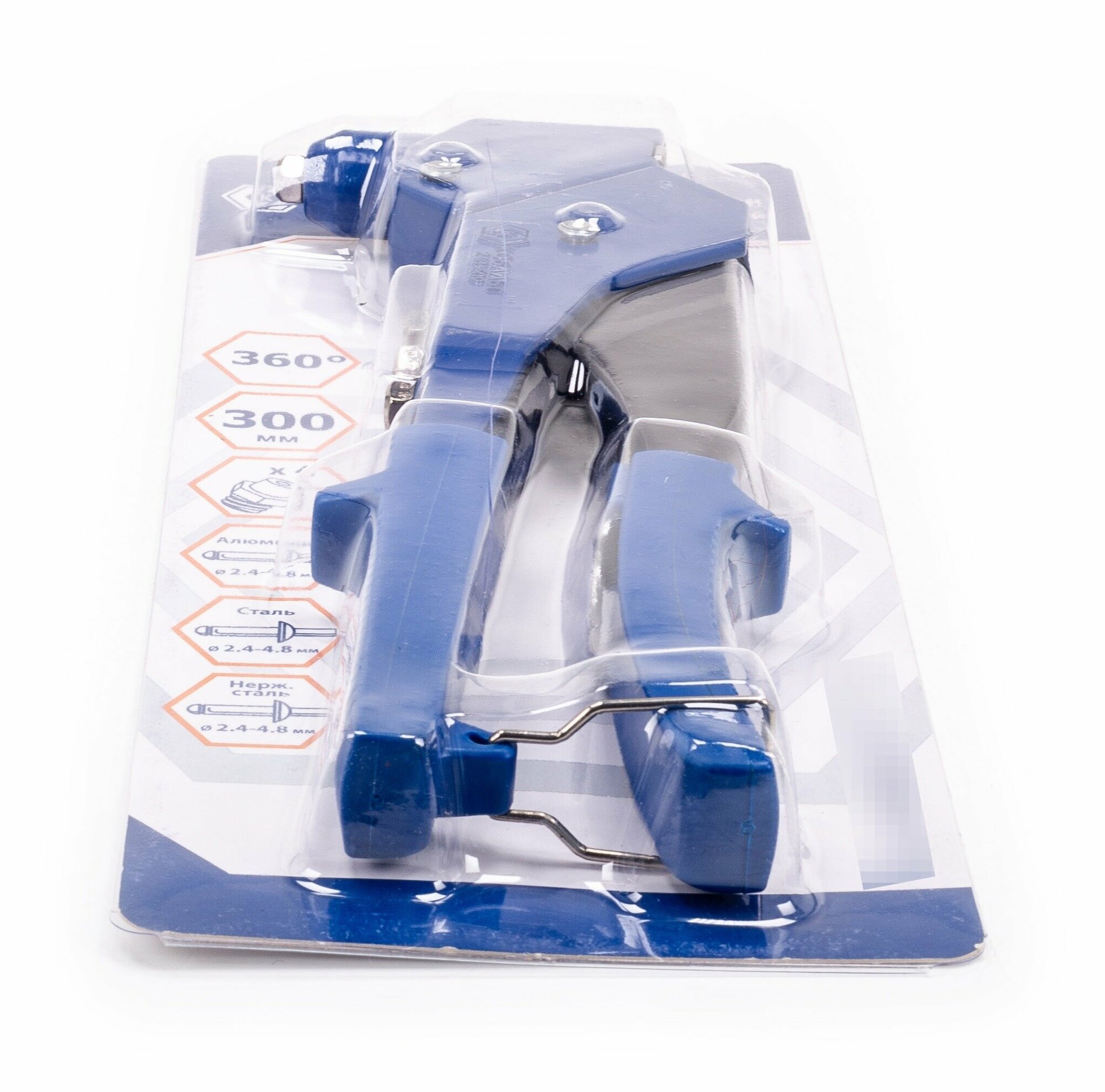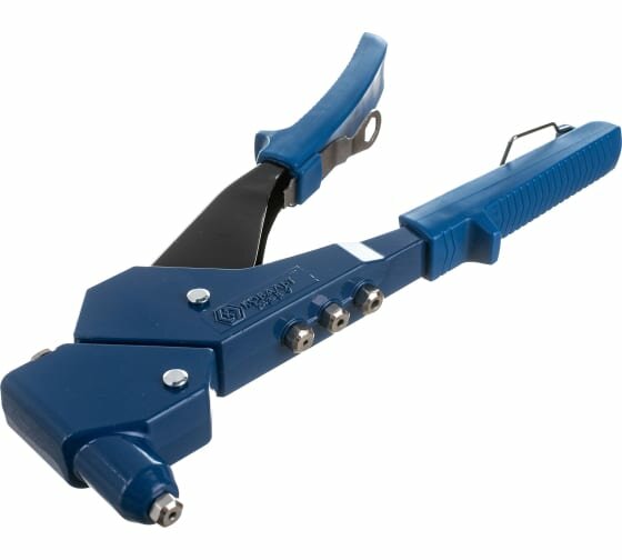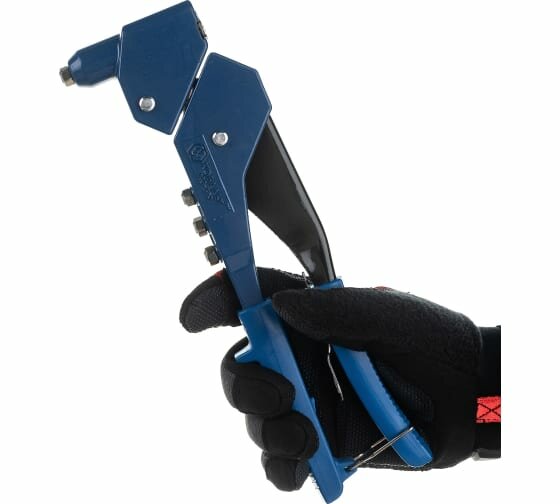 Заклёпочник 300 мм позволяет крепко соединить два листа железа. Алюминиевый литой корпус, поворотная на 360° голова, для работы в труднодоступных местах, прорезиненные рукоятки. Используется для клепания листовых материалов с помощью вытяжных заклёпок из алюминия. Головка снабжена 4-мя сменными насадками 2,4/3,2/4,0/4,8 мм, которые идут в комплекте и крепятся на инструменте, что добавляет удобство в работе. Благодаря специальной скобе можно зафиксировать положение рукояток.