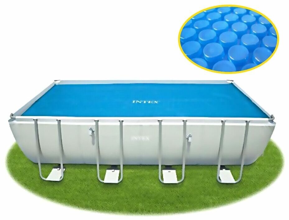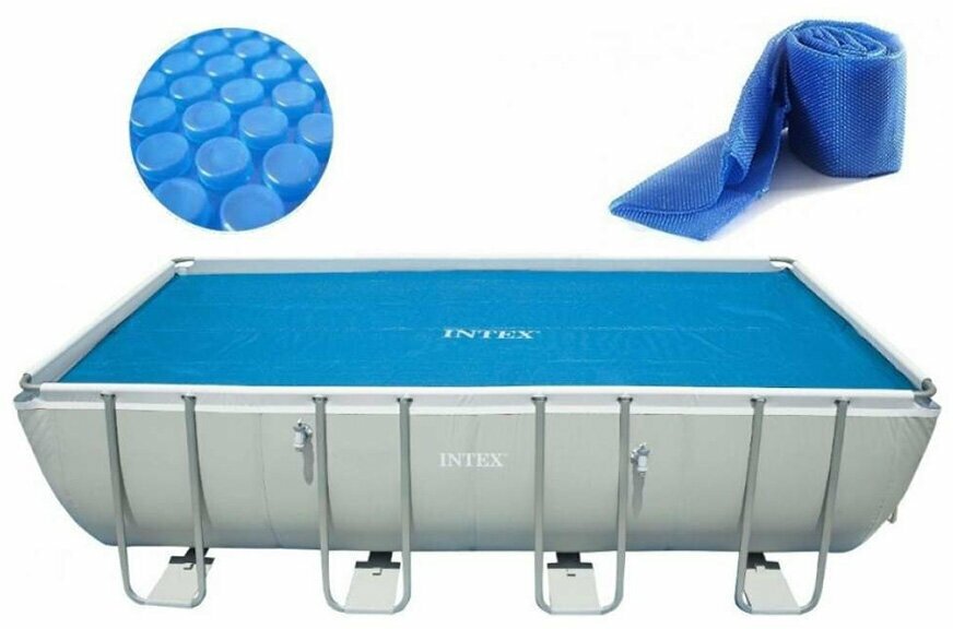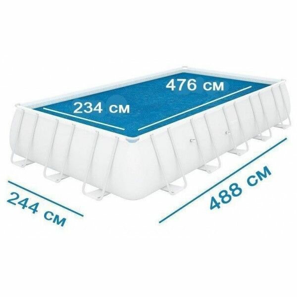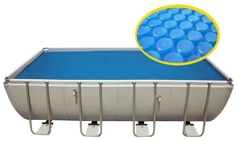 Еще одной особенностью данного тента является отсутствие каких-либо креплений (он плавает на поверхности воды). И если обычный тент больше предназначен для долговременной защиты бассейна, то данный тент удобно использовать вечером - за ночь вода остынет меньше, а уже с первыми лучами солнца она начнет нагреваться. Данная модель предназначена для прямоугольных надувных и каркасных бассейнов размером 488х244 см.