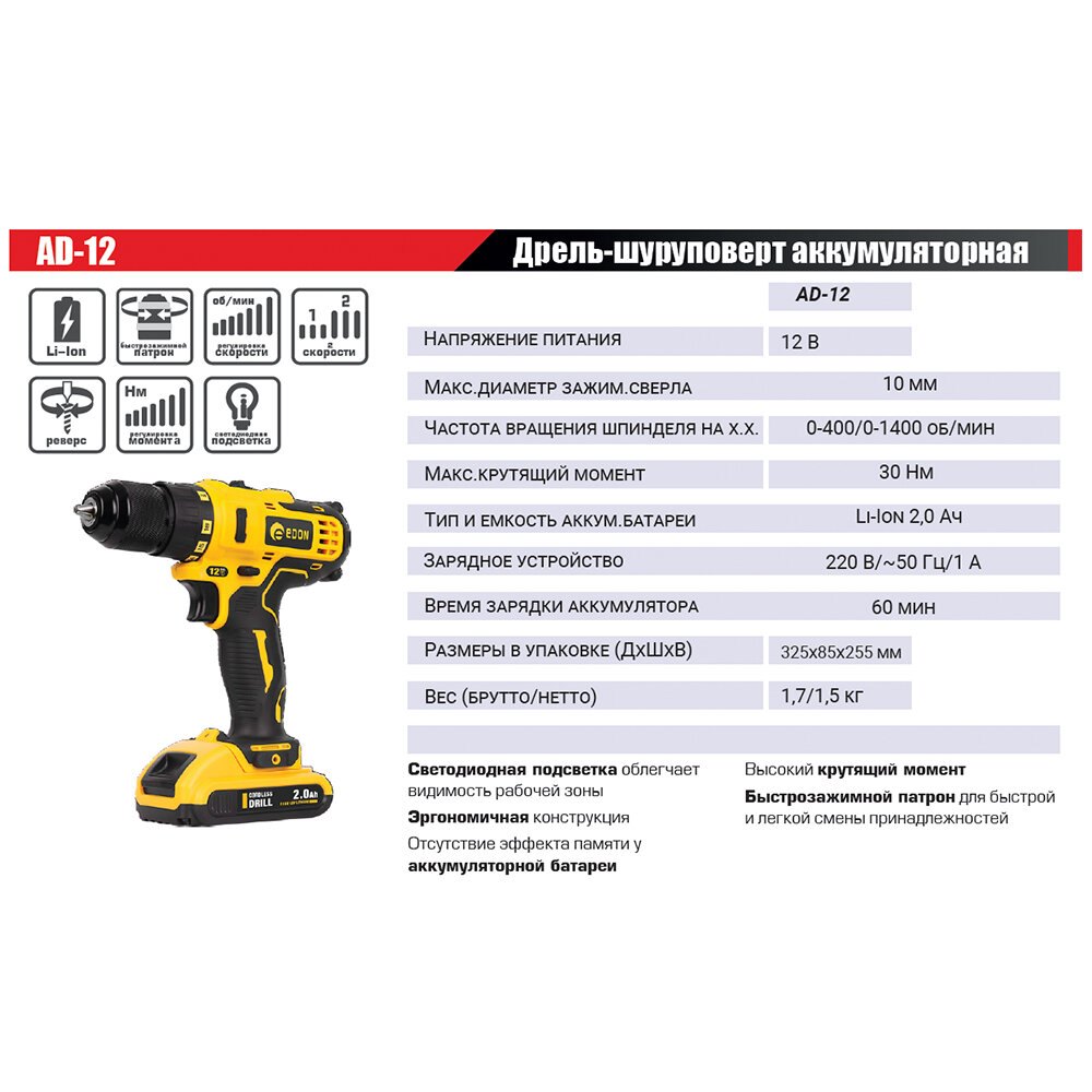 - Шуруповерт EDON AD-12A обзор
