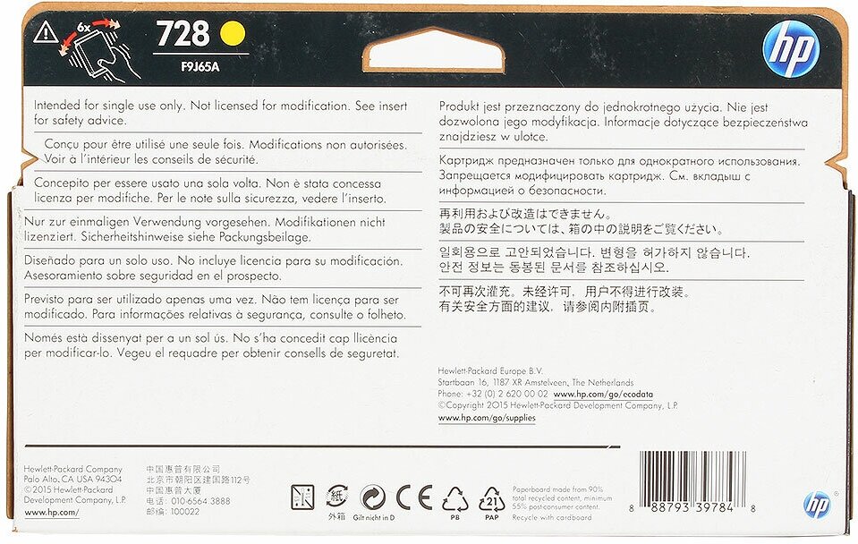 | Модель | DesignJet 728 Yellow 130 мл (F9J65A) |