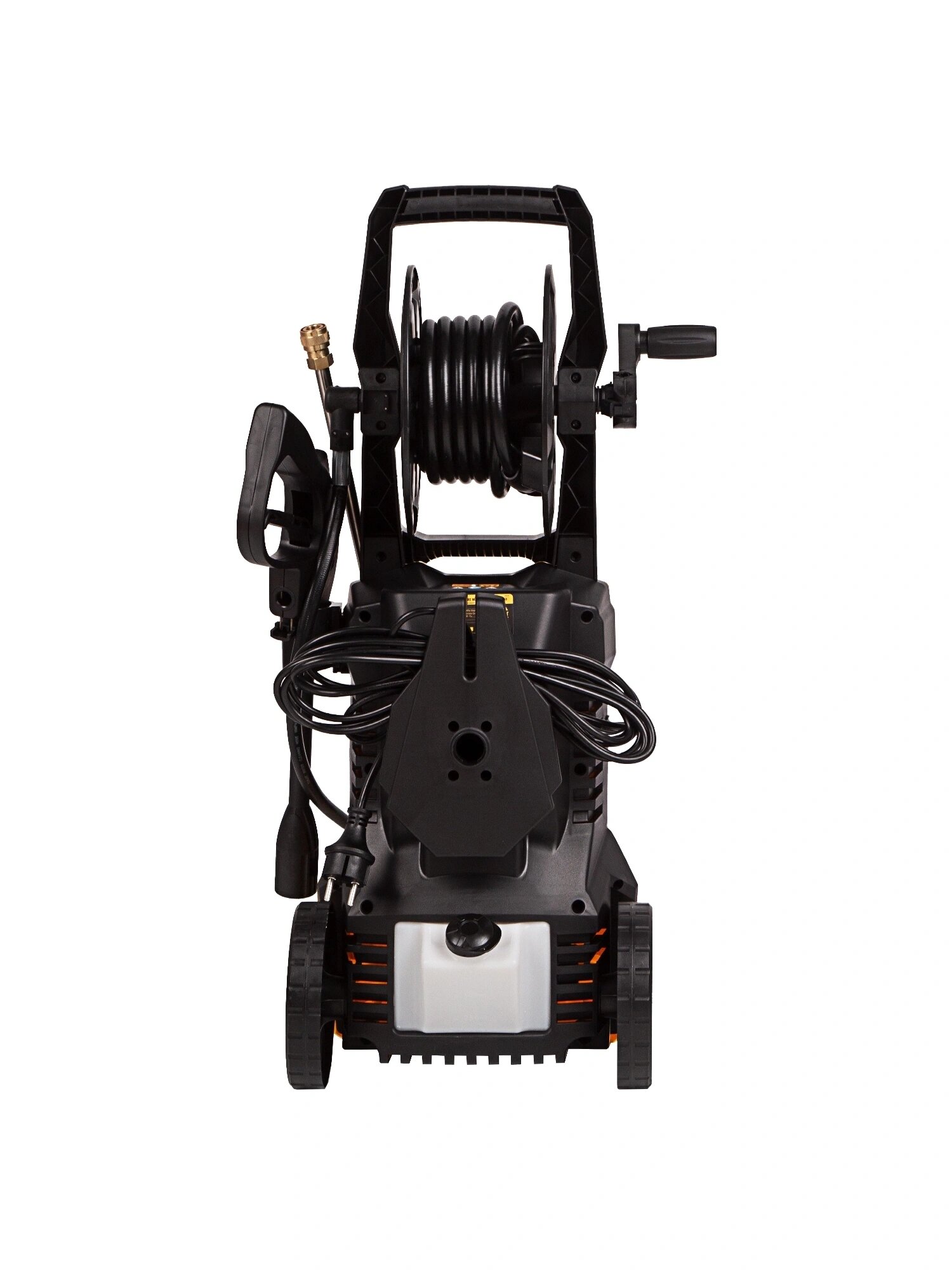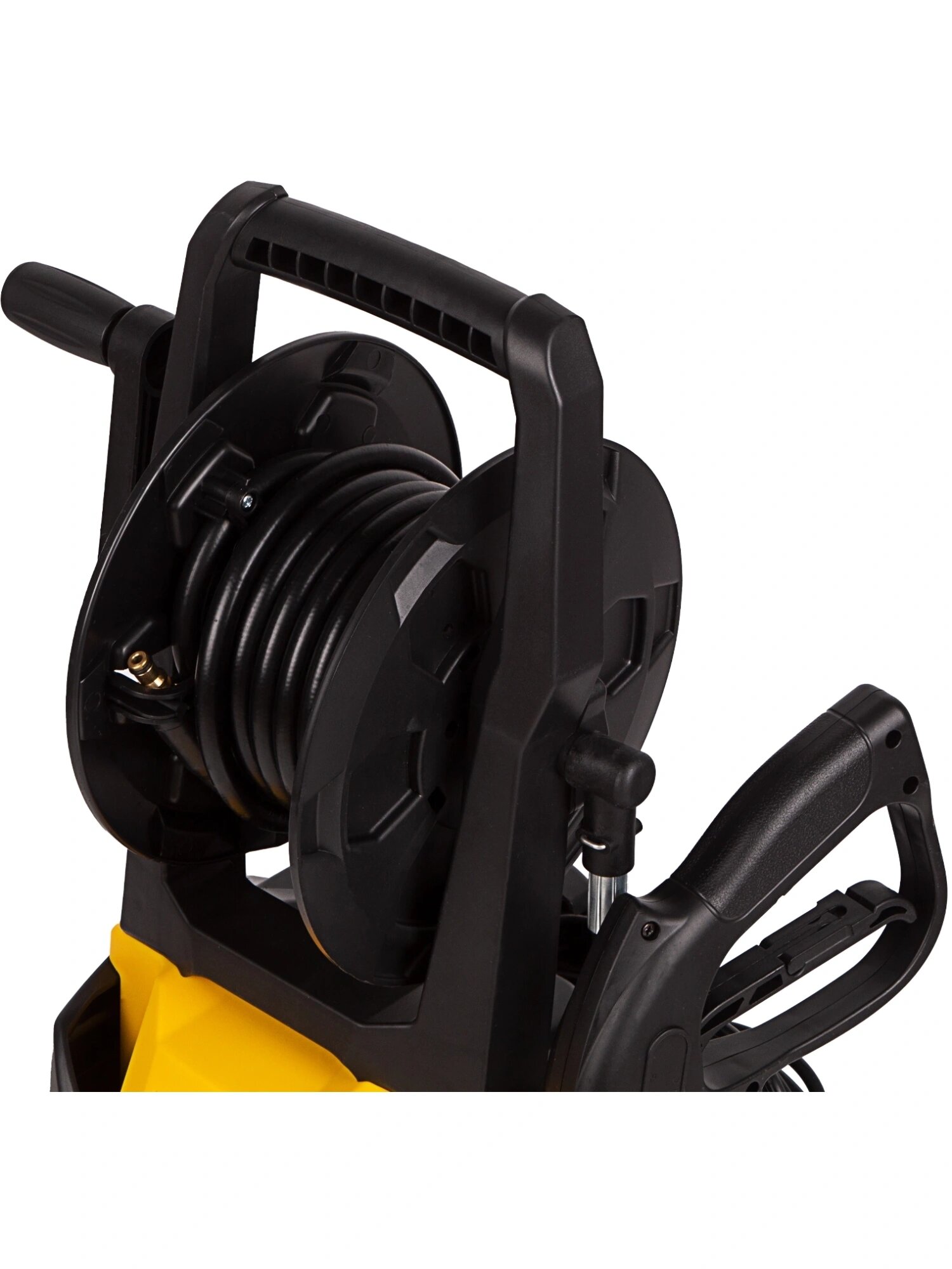 Модель комплектуется функциональным барабаном со шлангом высокого давления длиной 5 м, имеет ручку и колеса для удобного перемещения.