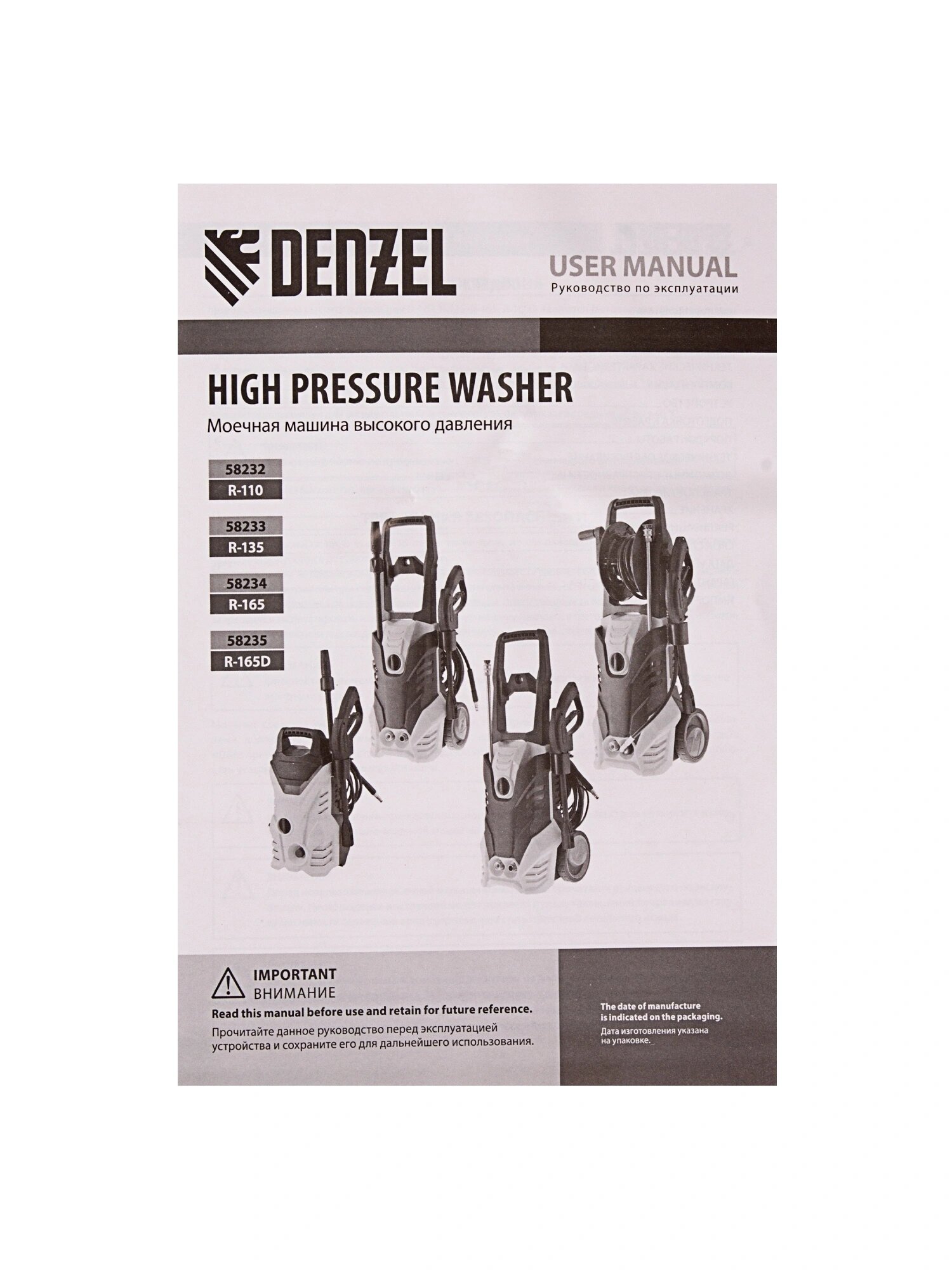 - Моечная машина высокого давления R-165D, DENZEL, арт. 58235