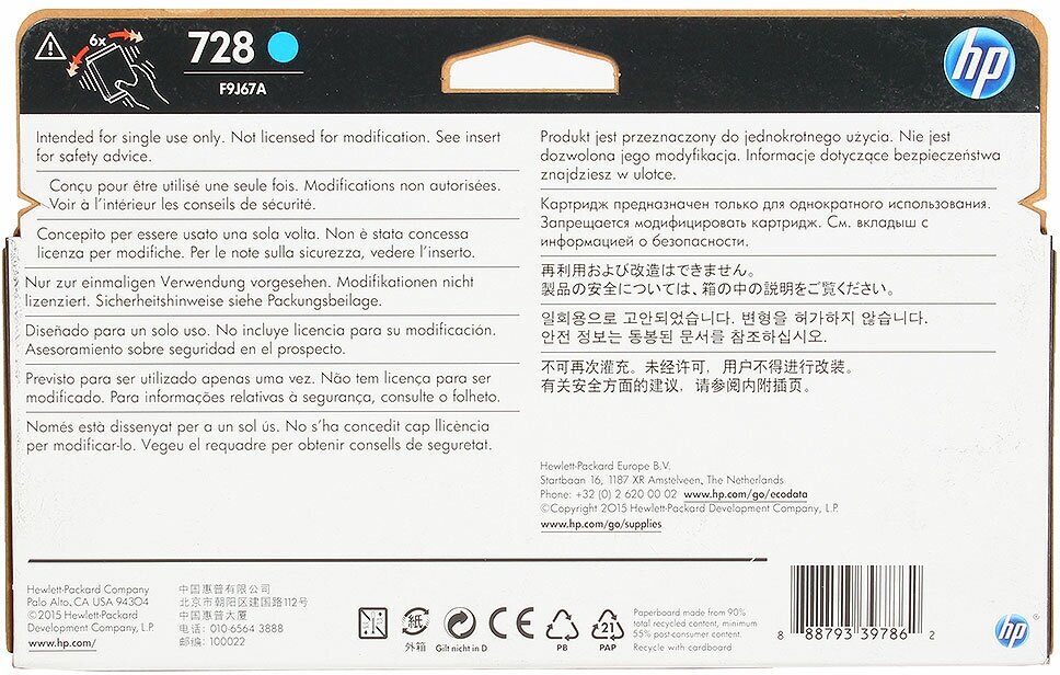 | Модель | DesignJet 728 Cyan 130 мл (F9J67A) |