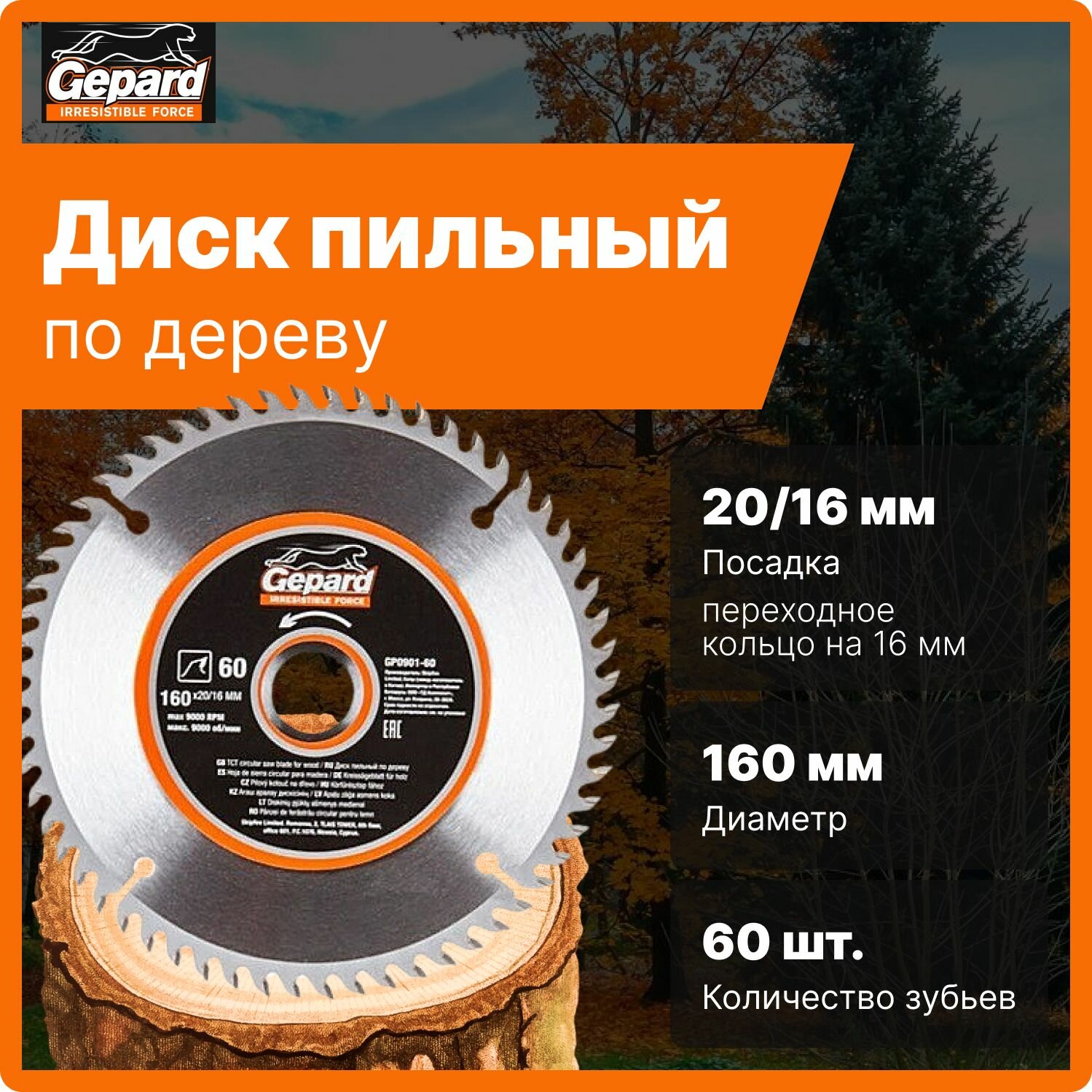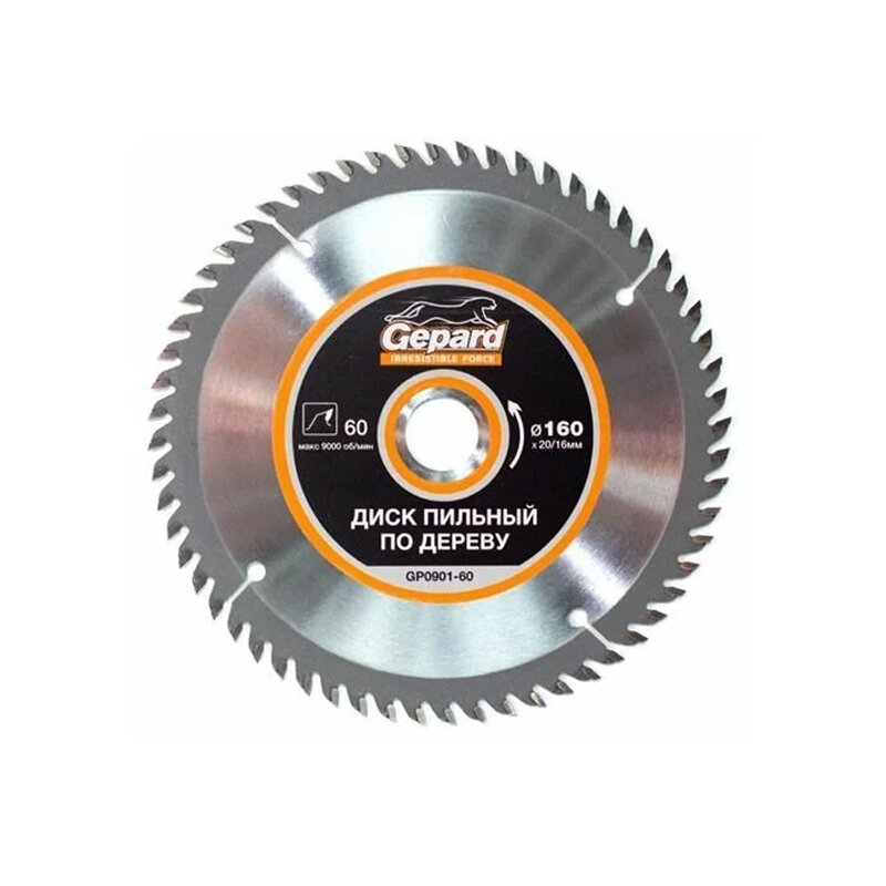 Диск пильный Gepard , 160х20/16 мм, 60 зубьев, по дереву - для распиловки заготовок из мягких и твердых пород древесины, фанеры, ДСП.Преимущества Изготовлен пильный диск из пружинной стали марки 65MN Форма зуба (ATB) с положительным углом наклона обеспечивает эффективную распиловку крупных заготовок Твердосплавные напайки из сплава карбид вольфрама (YG6X) припаяны высокопрочным припоем Алмазная заточка с выхаживанием значительно увеличивает срок службы инструмента Тщательно подобранный угол заточки твердосплавных зубьев позволяет производить качественные и высокопроизводительные работы по распиловке древесины Компенсационные прорези уменьшают колебания, подавляют шумы и препятствуют изгибанию диска при нагреве