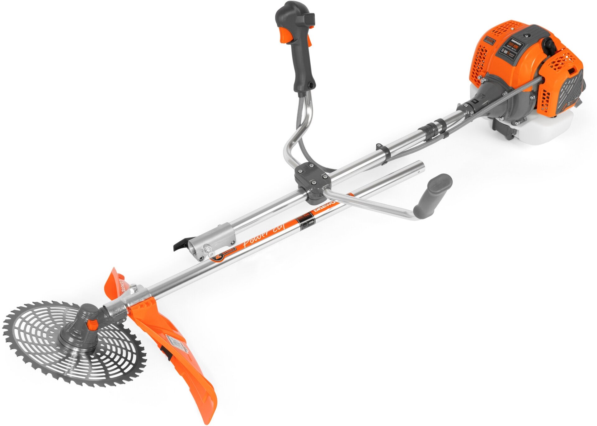 Бензотриммер Daewoo Power – мощная 2-х тактная коса с двигателем на 2 л.с. Триммер укомплектован леской и режущим диском. Диск изготовлен из высокопрочной стали с твердосплавными напайками. 40 зубьев позволяют использовать его для кошения жесткой травы, кустарника и тонких стволов деревьев.