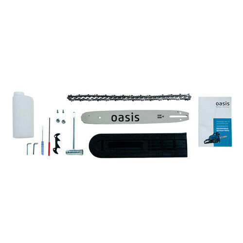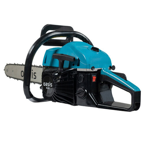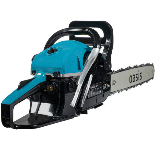 **Пила бензиновая Oasis Garden Tools ** используется для распиливания дров на дачном участке, приусадебной территории. Комфортную эксплуатацию обеспечивает антивибрационная система. В передней части располагается щиток, защищающий руки в процессе работы. Модель отличается простотой обслуживания - для доступа к свече зажигания не требуется применение специальных инструментов. Две рукоятки обеспечивают полный контроль за ходом устройства. В комплекте поставляются защитный кожух (для шины), очки, емкость для подготовки топлива, напильник.