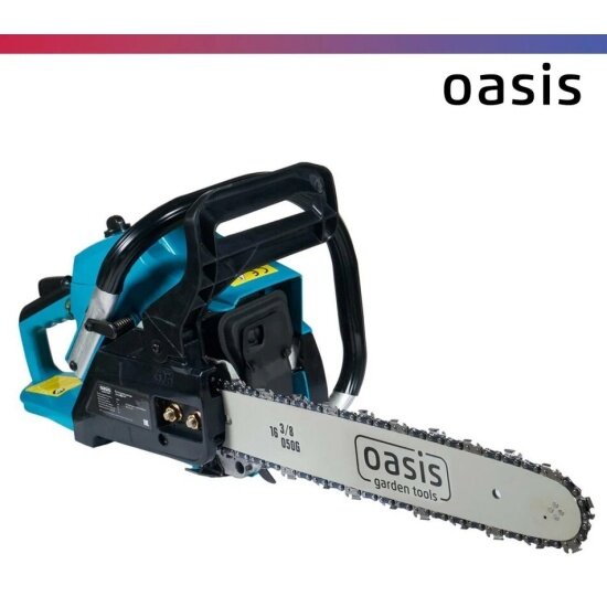 | Прочие особенности и свойства | Цепная бензиновая бензопила Oasis GS-16 – это хозяйственный прибор, который используется при работе с древесиной и другими материалами. Инструмент позволяет спилить лишние сухие ветки, распилить брёвна для обогрева дома и подготовить доски для дальнейшего ремонта или строительства., Бензиновая пила оснащена надёжным бензиновым двухтактным двигателем с топливным баком 310 мл, который позволяет ей работать в течении долгого времени без перерыва. Ручной топливный насос облегчает запуск холодного двигателя, запуск после заправки или длительного перерыва в работе. Регулируемый карбюратор бензопилы позволяет настроить работу двигателя в различных условиях. Боковое расположение механизма натяжения цепи делает процесс натяжения легкодоступным, удобным и быстрым. Бензиновая пила имеет регулируемую автоматическую систему смазки пильной цепи, что обеспечивает постоянную и бесперебойную работу цепного механизма., Для безопасного и комфортного использования бензопила оснащена фиксатором рычага газа, предотвращающим случайное включение. Благодаря функции торможения двигателя режущий диск быстро останавливается после выключения инструмента. Передовая система антивибрации значительно уменьшает вибрацию при работе двигателя, что делает работу более комфортной. Цепная пила Oasis имеет эргономичные рукоятки с противоскользящими накладками, которые обеспечивают надёжный и комфортный хват. |