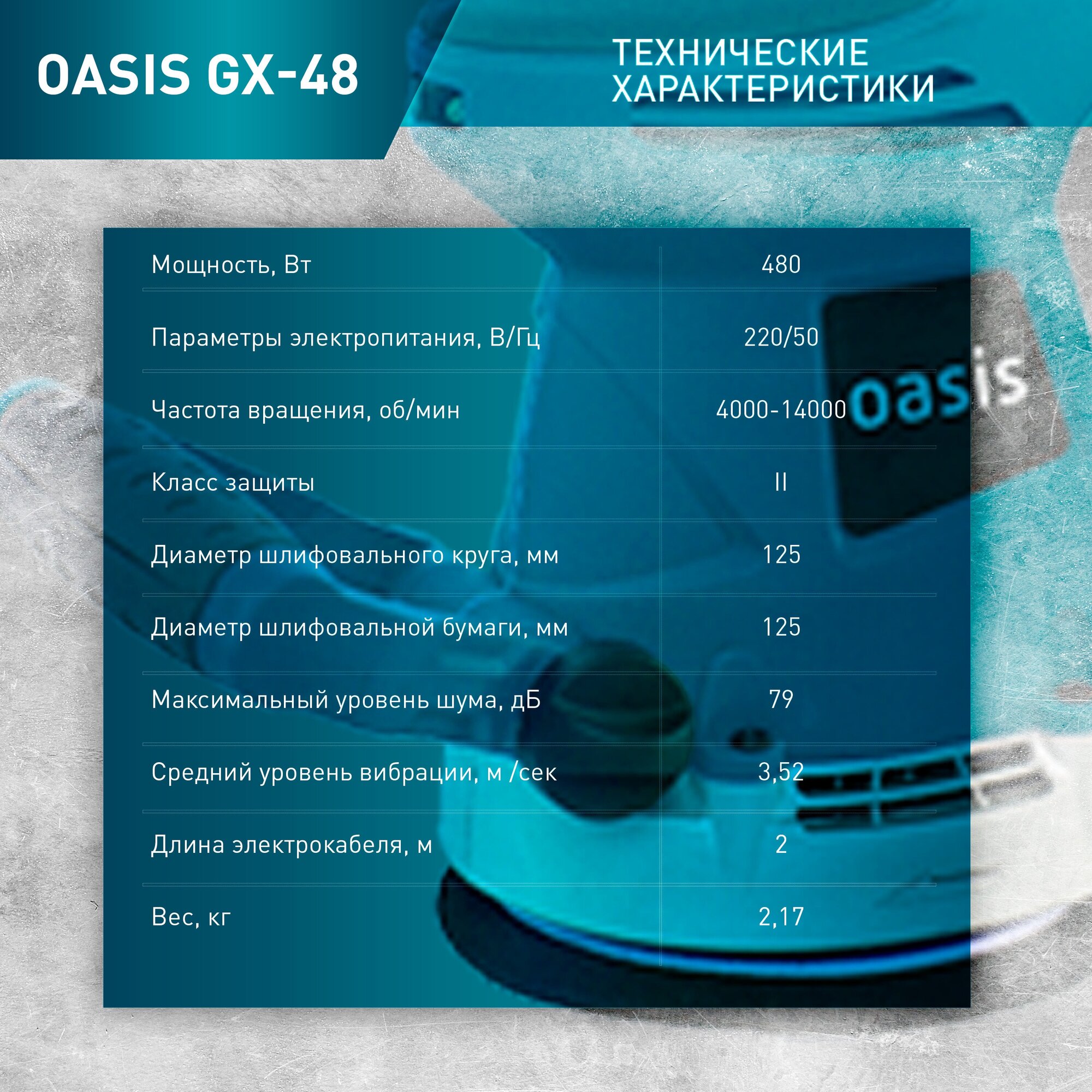 Эксцентриковая шлифовальная машина Oasis GX-48