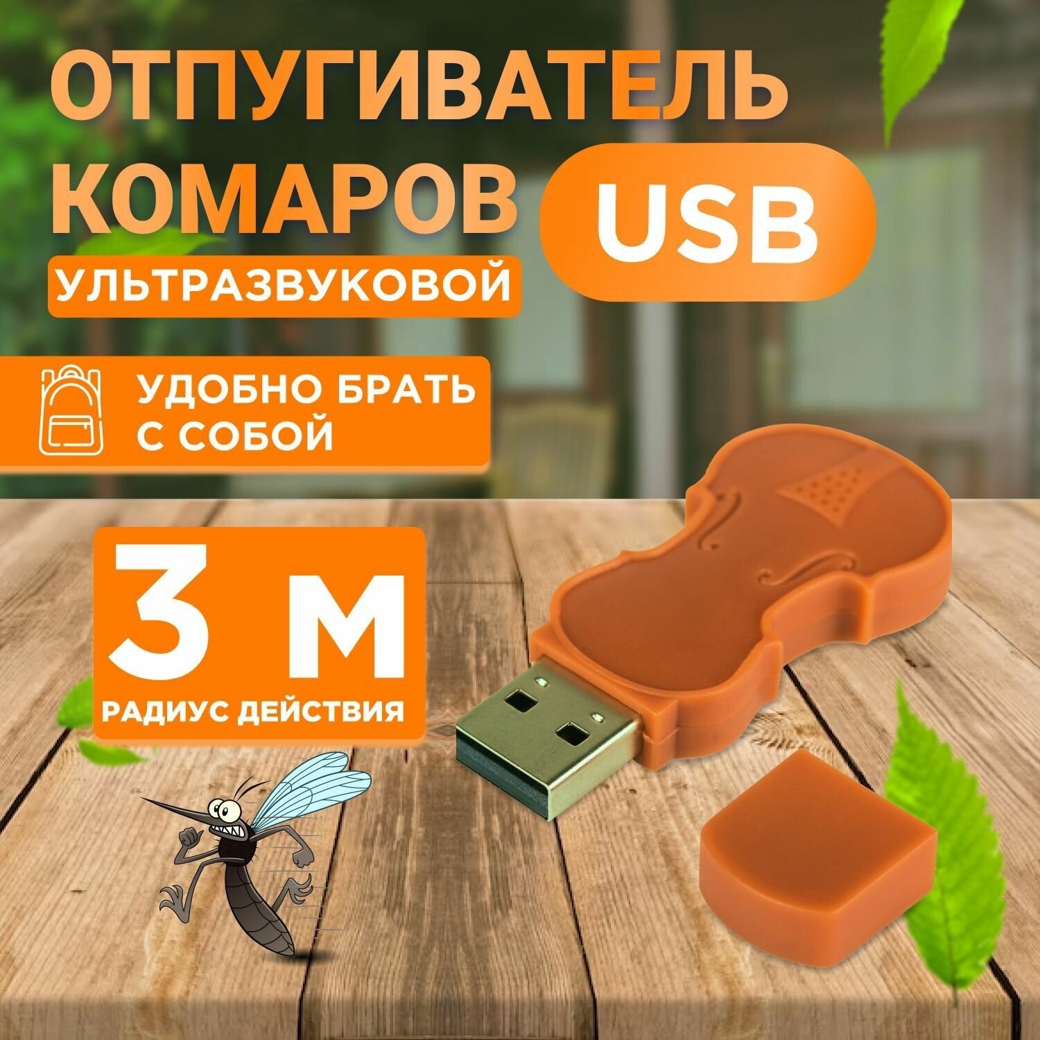 Портативный ультразвуковой отпугиватель комаров c USB в виде флешки. Предназначен для отпугивания комаров путем имитации звука природного врага комаров - стрекозы. Ультразвуковой отпугиватель комаров является безопасным, компактным, простым в эксплуатации устройством обеспечивающим защиту от комаров. Работает от ноутбука, системного блока, Power Bank и других устройств имеющих USB-вход.