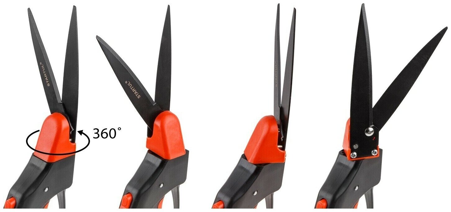 Предназначены для стрижки травы на небольших газонах и клумбах. Ножницы оснащены поворотной рабочей частью и расположенным сверху фиксатором. Предохранительный эфес на нижней рукоятке защищает пальцы от уколов и царапин при работе. Тефлоновое покрытие верхнего лезвия обеспечивает легкость реза и максимальную защиту от коррозии.