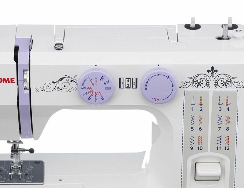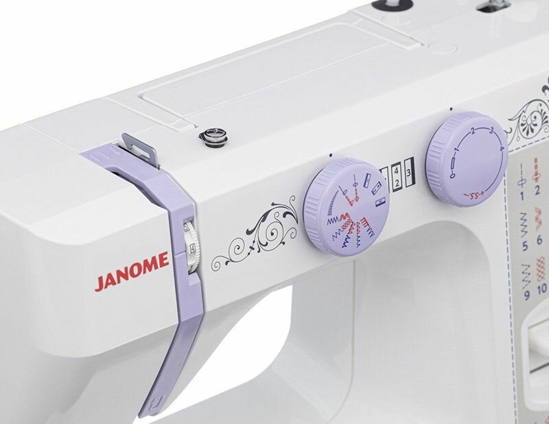 Швейная машина Janome достигает скорости движения иглы до 400 ст/мин. Всего доступны 13 операций – выметывание петель в режиме полуавтомата, формирование прямых, криволинейных, оверлочных строчек, подгибка краев текстильных изделий.