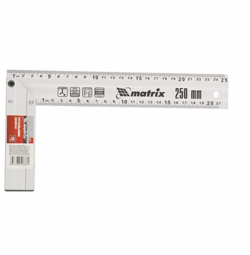 | Дополнительно | Предназначен для разметки и проверки прямых углов при обработке и сборке изделий. Имеет анодированную поверхность. Алюминиевый измерительный профиль имеет желоб, который придает особую прочность конструкции. Двухсторонняя разметка с обеих сторон профиля. Информативные пиктограммы. Отверстие для подвеса. |
