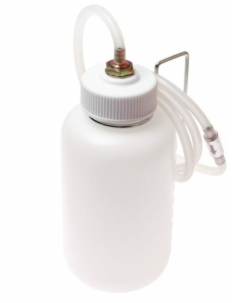 Применяется для удаления- прокачки, тормозной жидкости. Регулируемый черный резиновый адаптер подходит для различных размеров перепускных клапанов. Конструкция позволяет визуально контролировать рабочий процесс. Технические характеристики Емкость: 1000 см³. Длина трубки: 1300 мм. Порядок работы Замена тормозной жидкости Подсоедините резиновый адаптер к штуцеру прокачки; Отверните штуцер прокачки; Слейте старую тормозную жидкость; Отсоедините адаптер. Заверните штуцер обратно. Прокачка тормозов Надеть шланг на прокачной штуцер; Открыть штуцер на оборот; Педаль тормоза выжимается до упора и удерживается в выжатом положении; Наблюдаем выход «завоздушенной» смеси; Закручиваем штуцер и отпускаем педаль.