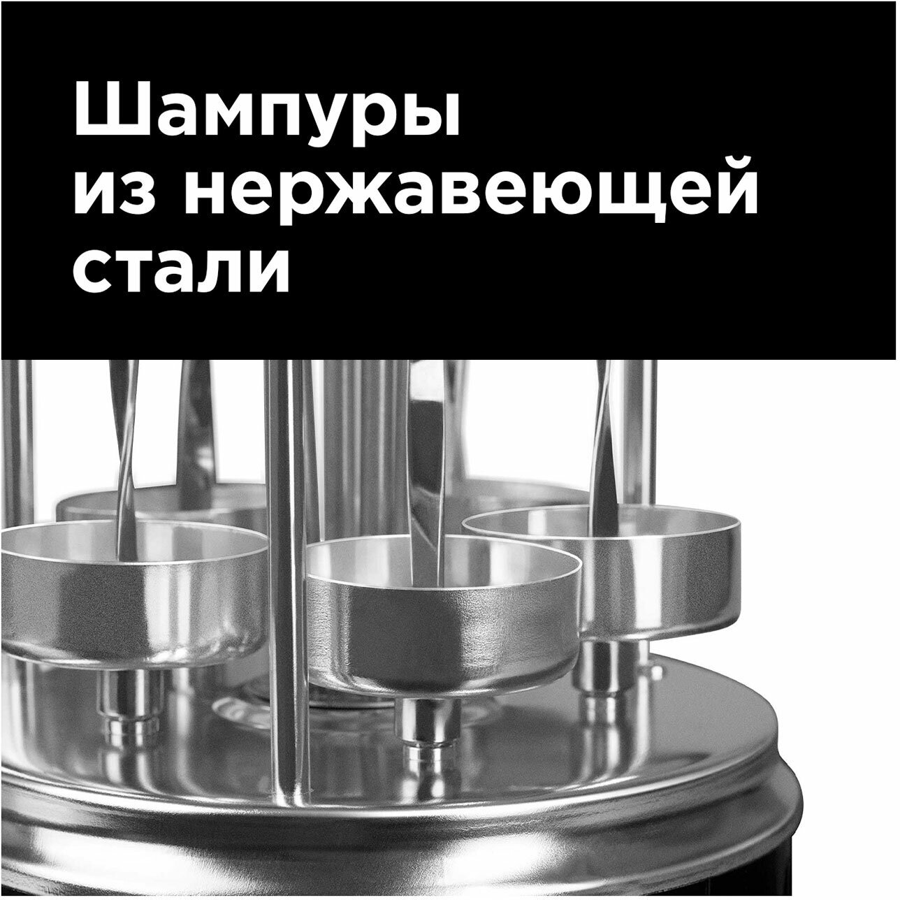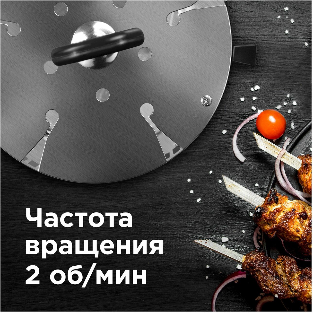 | Дополнительная информация | Материал шампуров - нержавеющая сталь. В шашлычницу устанавливается пять шампуров (шестой - запасной). Частота вращения шампуров 2 об/мин. |