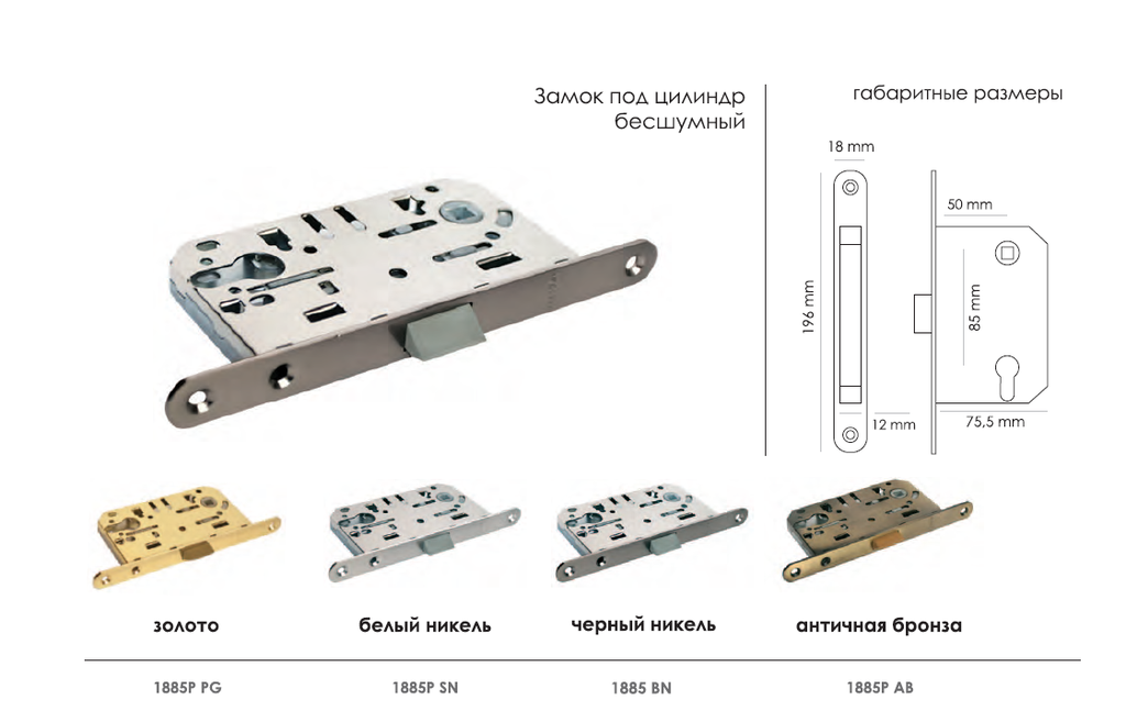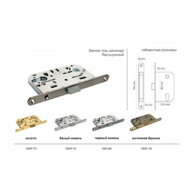 Защелка под цилиндр с пластиковым язычком используется для бесшумного запирания межкомнатных дверей ключом.