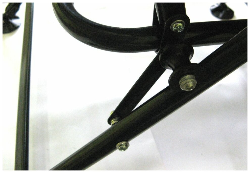 Кресло оборудовано четырьмя телескопическими ножками, благодаря которым его легко можно установить на практически любой неровной поверхности. На ножках продуманы широкие наконечники предотвращающие вдавливание ножек в мягкий грунт и погружение в песок при нагрузке.