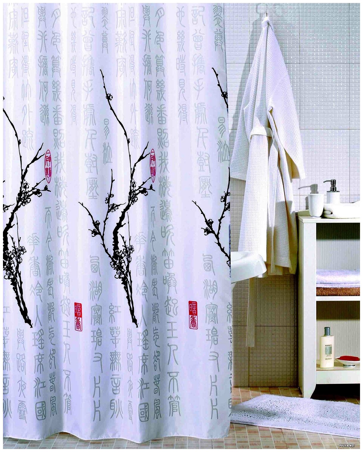 Штора для ванны Iddis Cherry Tree - выполнена из качественного полиэстера. Материал гибкий, прочный, не прилипает к телу и хорошо пропускает свет. Сочетается с современным стилем. Допускается стирка в стиральной машине. Материал быстро высыхает и разглаживается. Специальный водоотталкивающий состав Waterproof предотвращает намокание шторки.