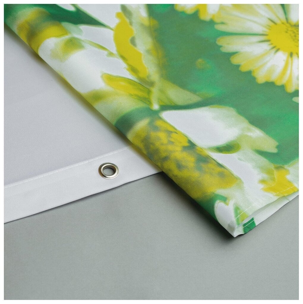 Штора для ванны Iddis Daizy Garden - выполнена из качественного полиэстера. Материал гибкий, прочный, не прилипает к телу и хорошо пропускает свет. Сочетается со стилем Hi-Tech и современный. Допускается стирка в стиральной машине. Материал быстро высыхает и разглаживается. Специальный водоотталкивающий состав Waterproof предотвращает намокание шторки.