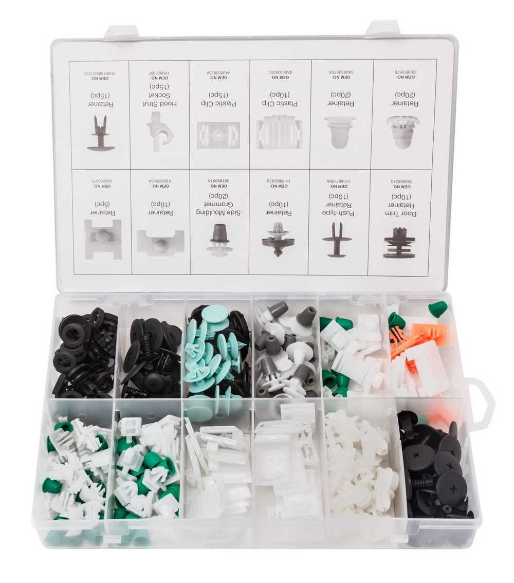 Набор клипс F-01Z02324 для AUDI 160 предметов в пластиковом органайзере Forsage - включает все необходимые крепежные клипсы для обслуживания автомобиля.