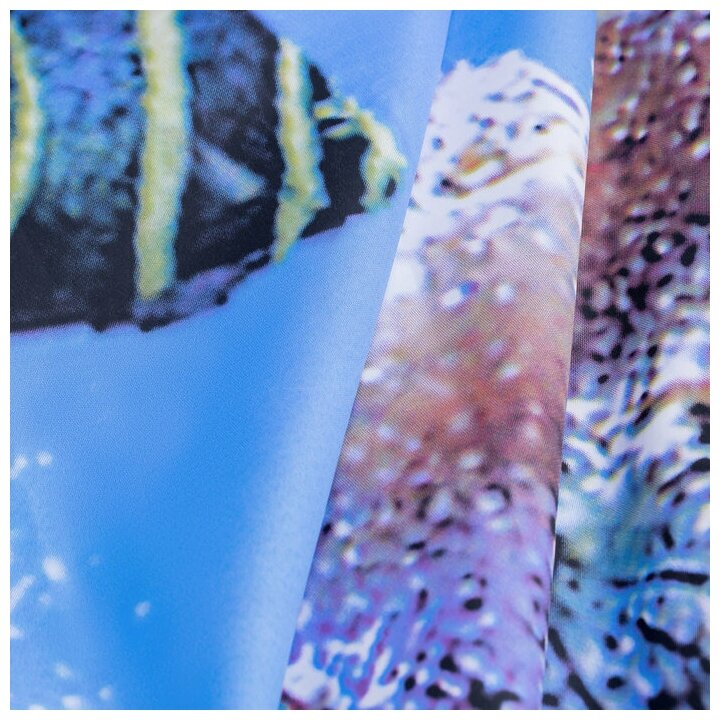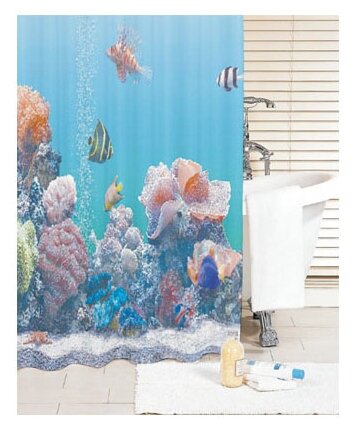 Штора для ванной комнаты изготовлена из быстросохнущего материала, что обеспечивает прочность изделия и легкость ухода за ним. Материал шторы пропитан специальным водоотталкивающим составом. Нижний край шторы оснащен утяжеляющей нитью, благодаря которой штора имеет законченный вид, легко распрямляется и не мнется.