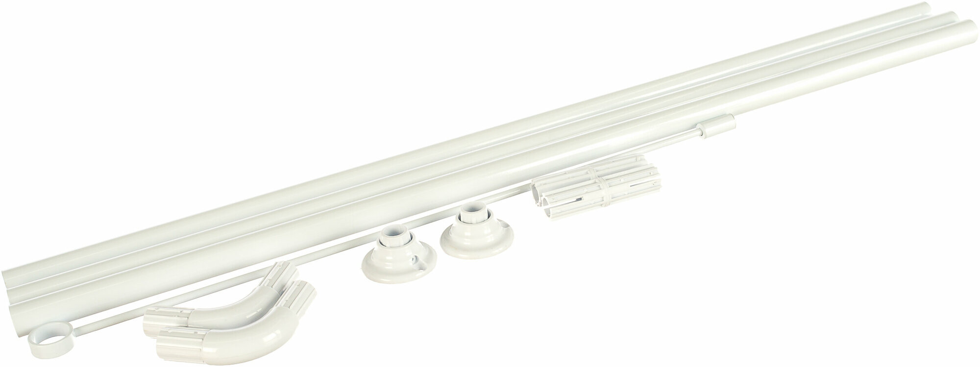 Iddis - угловой карниз для штор в ванную комнату. Имеет телескопическую конструкцию, благодаря которой его размер увеличивается со 110 до 200 см.