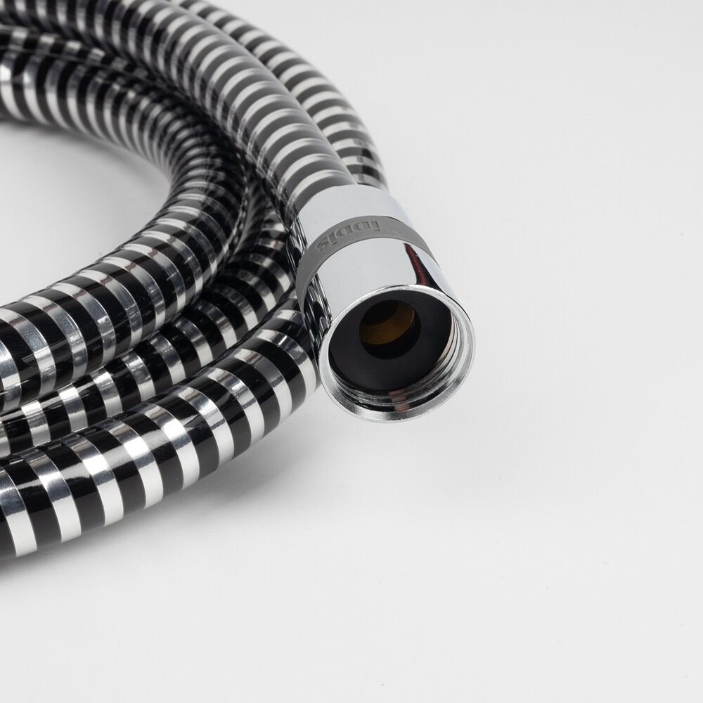 Шланг из ПВХ в оплетке из нержавеющей стали, длина: 2 м. Резиновое кольцо на конической гайке для фиксации в держателе.