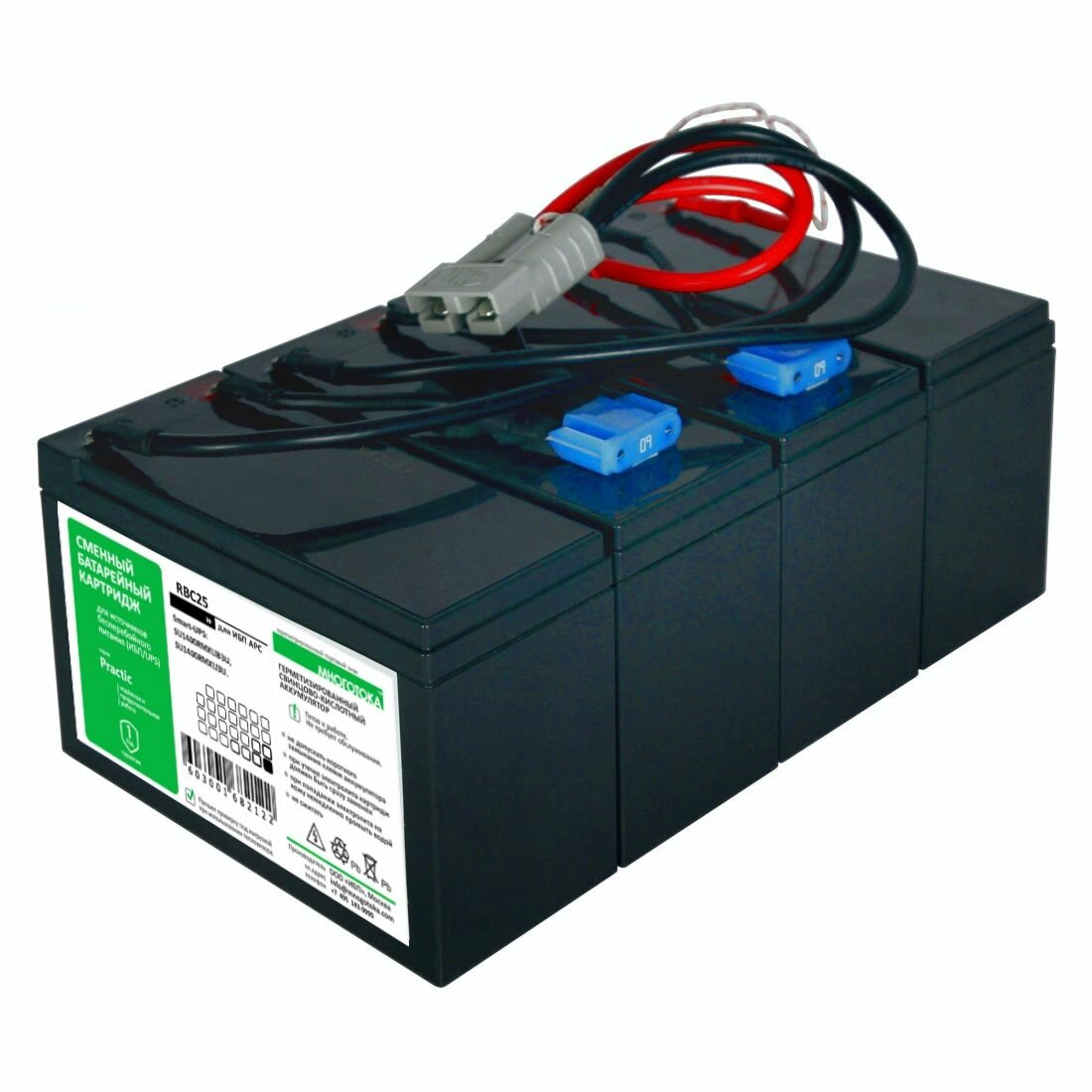 Сменный аккумуляторный картридж APC №25. Комплекты запасных аккумуляторов производства APC безопасны, надежны и имеют минимальное количество разъемов для экономии времени при монтаже и демонтаже. Так как комплекты запасных аккумуляторов APC поддерживают горячую замену, для их установки не требуется прерывать работу сети.