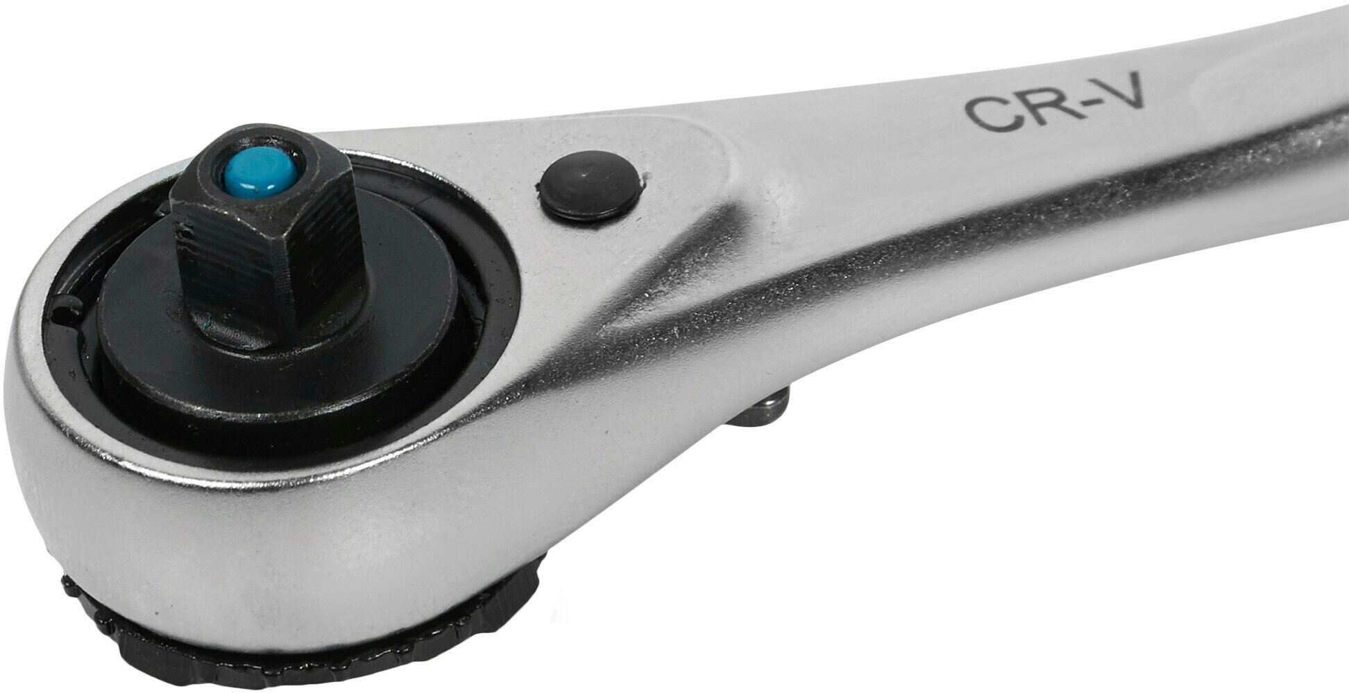 | Прочие особенности и свойства | Размер присоединительного квадрата: 1/4 дюйм, Изготовлен из высококачественной хромованадиевой (CrV) стали., Трещоточный механизм 120 зубьев. |