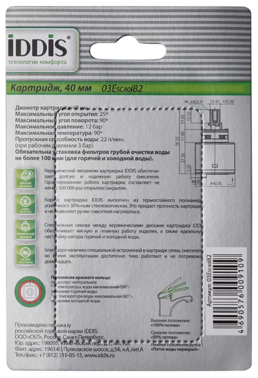 Картридж, 40 мм, EcoStop, EcoControl, 03, IDDIS, . Картридж для смесителя с керамическими пластинами, 40 мм. 2 step - позволяет открывать воду в 2 этапа: на 1м поток подается в экономичном режиме, на втором – в полном, что позволяет сэкономить расход воды. Красное кольцо позволяет установить ограничение на ход ручки вправо-влево, тем самым можно ограничить максимальную температуру воды.