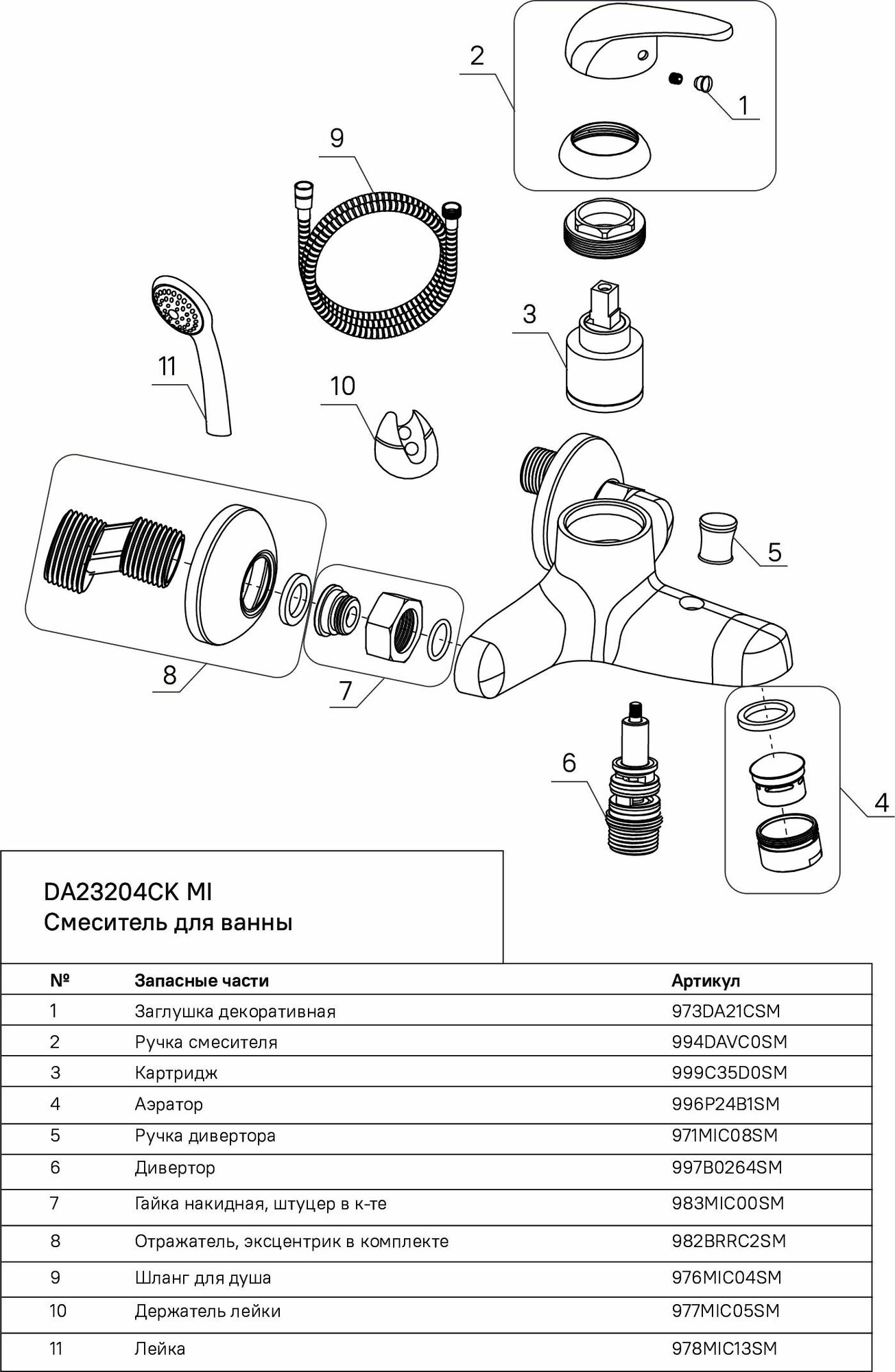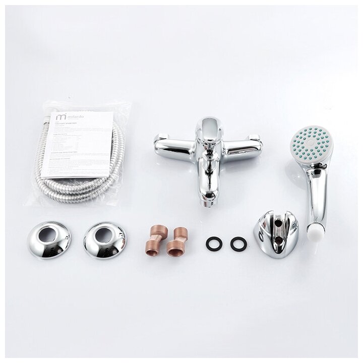 | ВКоробке | Смеситель - 1 шт. Лейка - 1 шт. Шланг - 1 шт. Настенный держатель - 1 шт. Эксцентрик - 2 шт. Инструкция - 1 шт. |