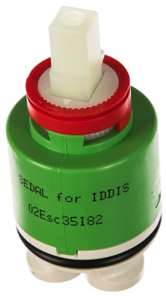 Картридж для смесителя с керамическими пластинами, 35 мм. 2 step - позволяет открывать воду в 2 этапа: на 1м поток подается в экономичном режиме, на втором – в полном, что позволяет сэкономить расход воды. Красное кольцо позволяет установить ограничение на ход ручки вправо-влево, тем самым можно ограничить максимальную температуру воды.