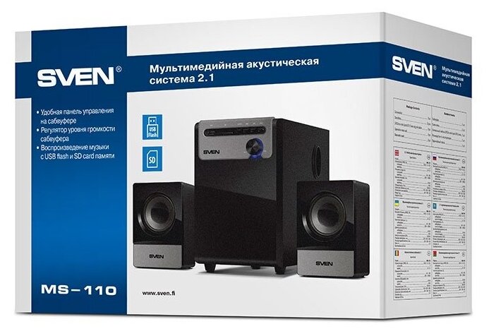 Акустика SVEN отличное решение для небольшого рабочего места. Компактная, удобная, с четким и громким звуком она станет отличным помощником для тех, кому недостаточно качества звукопередачи встроенной акустики ноутбуков и компьютеров. Мультимедийная акустическая система 2.1 SVEN способна воспроизводить музыкальный контент с карт памяти SD и флэш-накопителей. При разработке модели инженеры SVEN уделили особое внимание эргономике все органы управления вынесены на переднюю панель сабвуфера.