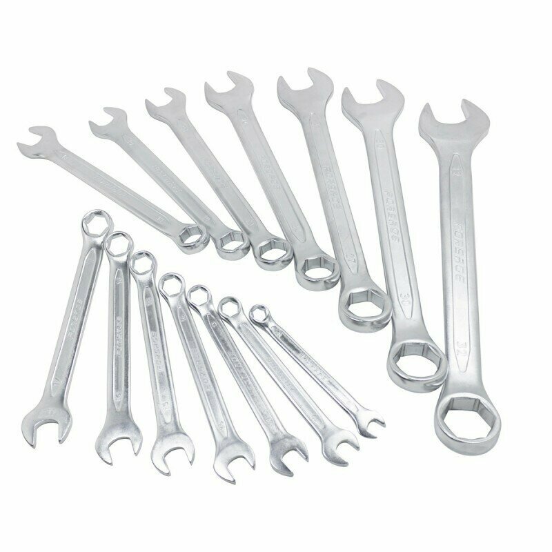 Набор комбинированных ключей Forsage универсальный 14 предметов. Предназначен для ремонтных работ, когда необходимо осуществить монтаж или демонтаж резьбовых соединений. Изготовлен из хромованадиевой стали , что обеспечивает высокую прочность и долговечность. Для удобства хранения и транспортировки предусмотрен чехол, в котором каждый ключ находится в отдельном кармане с маркировкой. Все это обеспечивает легкий доступ и быстрый поиск необходимой модели в процессе работы.