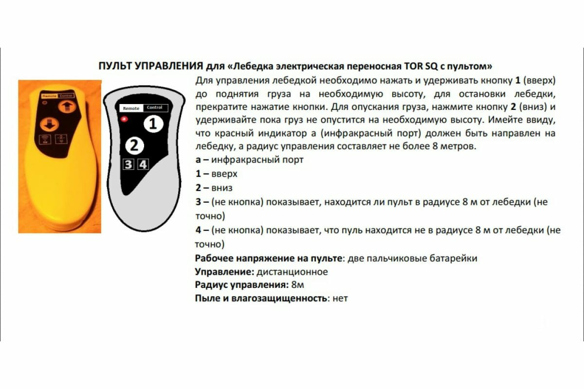 - Лебедка электрическая переносная TOR SQ - 05 450 кг 4,6 м