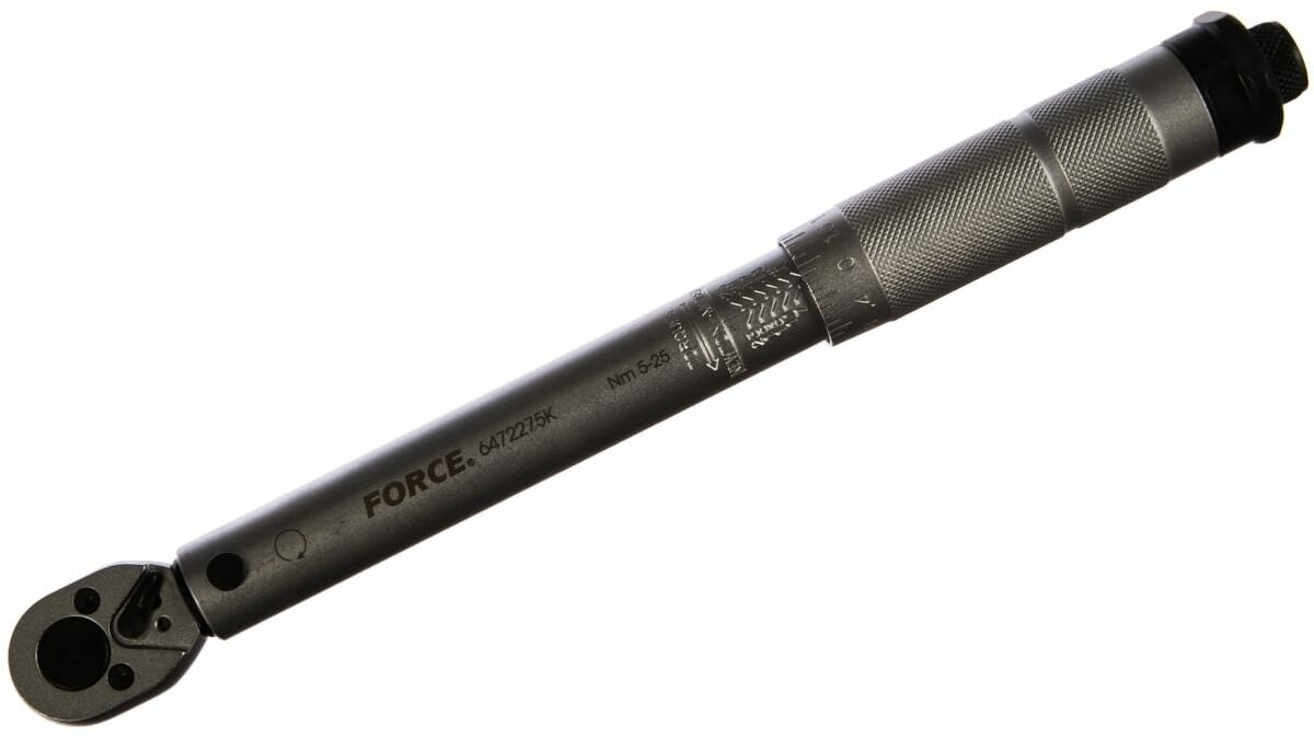 Динамометрический ключ 5-25Nm FORCE разработан для затягивания крепежа с ограничением усилия. Инструмент обладает высокой прочностью.Наличие трещотки позволяет контролировать усилие затяга с высокой точностью. Удобная рукоять не скользит в ладонях.