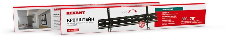 | Кронштейн REXANT серии HOME используется для крепления LED, LCD, PLASMA телевизоров 30- 70 дюймов к стене. Оснащен наклонным механизмом, который позволяет регулировать положение телевизора относительно вертикальной оси (угол наклона | - 10/0). |