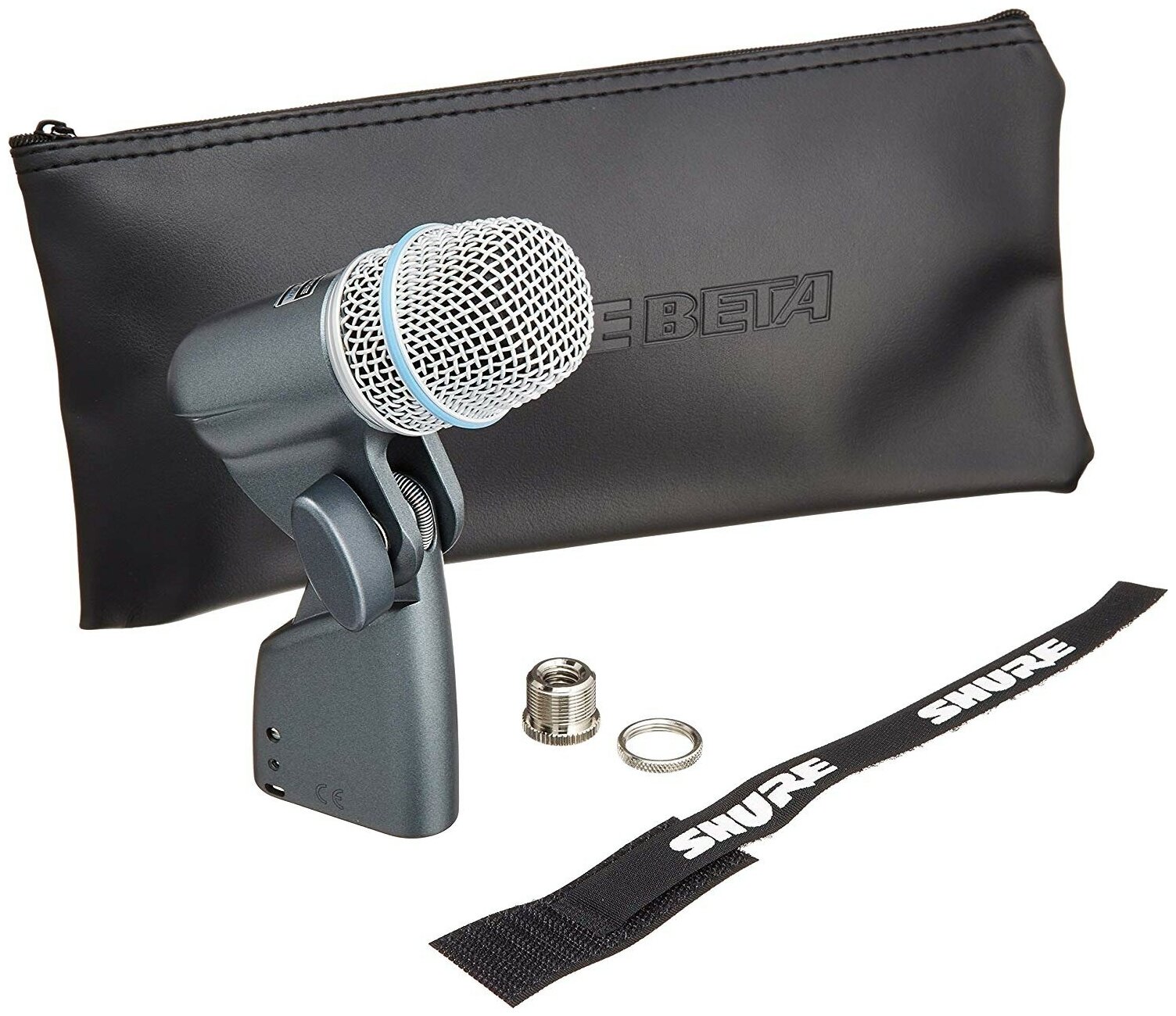 Встроенный держатель с разъемом XLR упрощает установку и фиксирует микрофон в необходимом положении, даже при резких ударах барабанной палочкой. К типовым применениям микрофона BETA 56 относятся озвучивание и запись том-томов, перкуссионных инструментов, гитарных комбиков, духовых и рожковых инструментов.