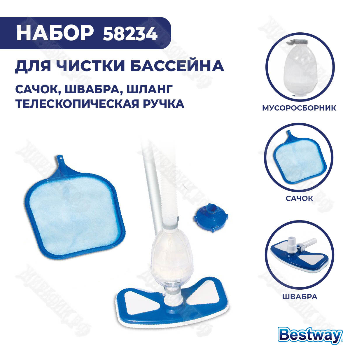 - Набор для ухода за бассейном ("водяной пылесос")+ сачок, Bestway 58234
