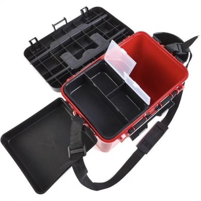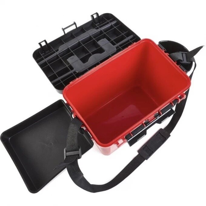 Большинство рыболовов-зимников предпочитают выезжать на подледную рыбалку, взяв с собой рыболовный ящик. На ящике удобно ловить рыбу, перевозить в нем удочки и прочее рыболовное снаряжение, а в конце рыбалки - сложить в него пойманный улов. Ящик комлектуется съёмными пластиковыми карманом для снастей и подносом для приманок, а также подвижным внутренним лотком. Особенностью данной модели является возможность открывания крышки с обеих сторон.
