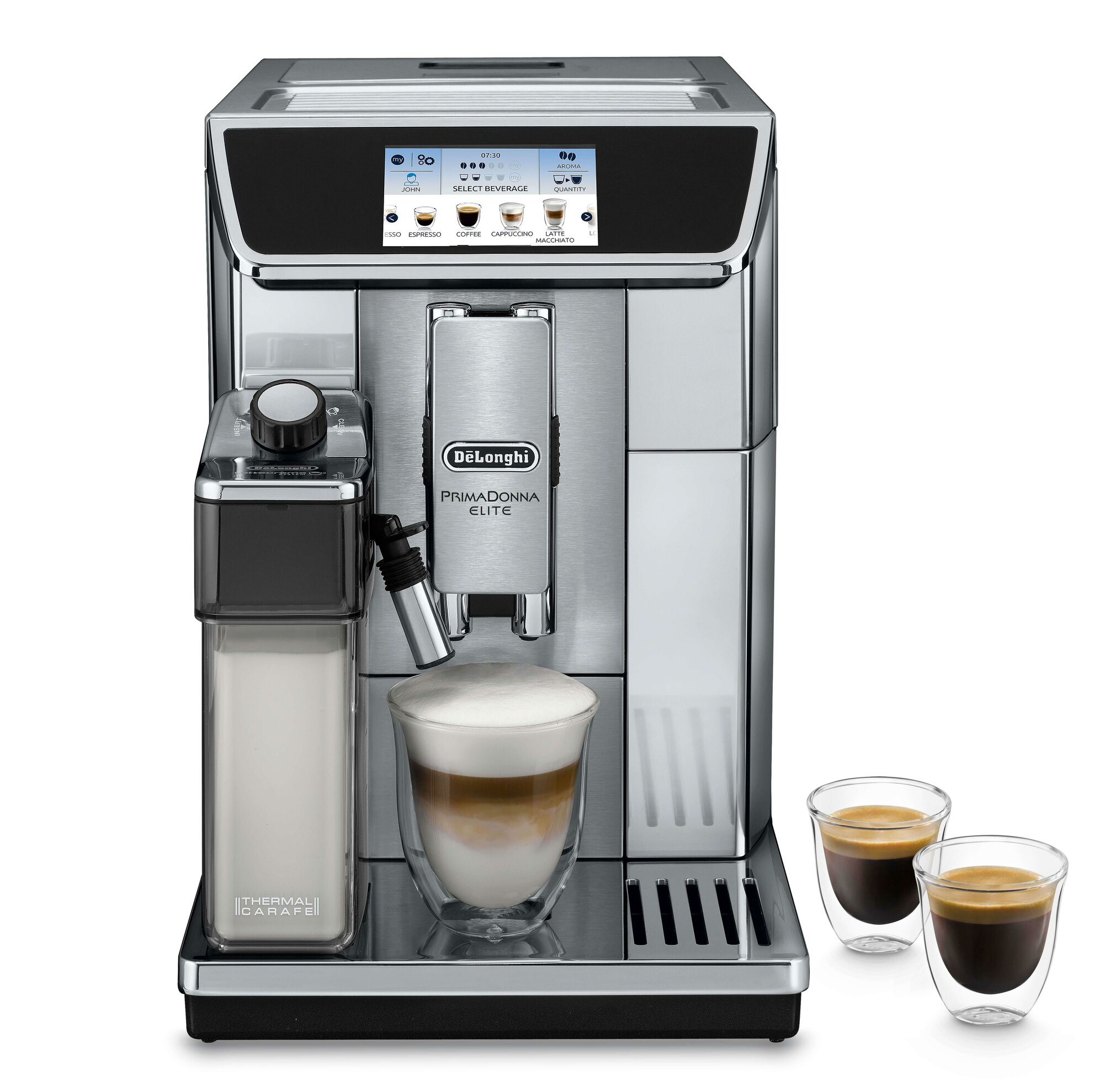 Delonghi ECAM 650.75 MS PrimaDonna Elite – это безупречное сочетание утонченного силуэта, динамичного дизайна и прогрессивных технологий, идеальная кофемашина для истинных ценителей кофе, ищущих простоту и удобство использования и соответствие приготовленных напитков персональным вкусовым предпочтениям.