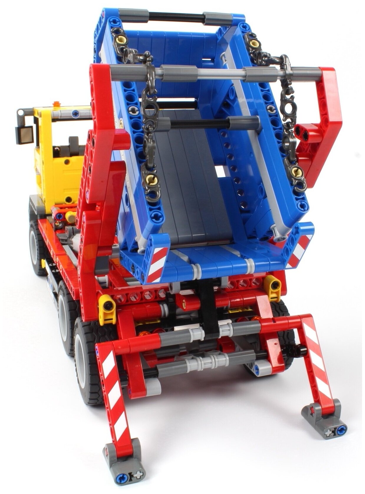 У контейнеровоза LEGO® Technic есть массивная передняя решетка, опоры и мощные приводы. Мощная машина с 6 колесами предназначена для выполнения тяжелых работ. Эта реалистичная модель 2-в-1 может перемещать любой груз в контейнерном отсеке и с помощью приводов поставить его на землю. Приготовься перемещать нешуточные грузы!