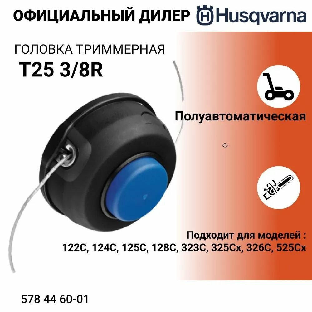 Головка полуавтоматическая T25 Husqvarna 5784460-01 подходит для триммеров с изогнутой штангой 122С, 124С, 125С, 128С, 323С, 325Сх, 326С, 525Сx.