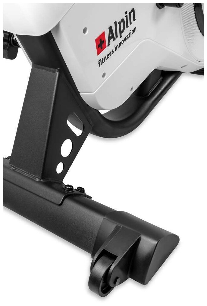 Велоэргометр ALPIN большой комфортабельный тренажер, усиленная конструкция рамы в состоянии выдержать вес пользователя до 150 кг. Плавный ход, бесшумная передача вращающего момента от педалей к маховику обеспечивается приводной системой высшего класса с технологическим блоком, состоящим из утяжеленного сбалансированного маховика весом 12 кг., трехкомпонентного педального узла, многожильного ремня и преднатяжителя, а также трех внутренних высококачественных впрессованных подшипников. Педали с регулируемыми ремнями настраиваются практически под любой размер стопы. Легко регулируемое в горизонтальной и вертикальной проекциях хромированное сидение повышенной комфортности позволяет проводить тренировки с максимальной эффективностью и удобством.
