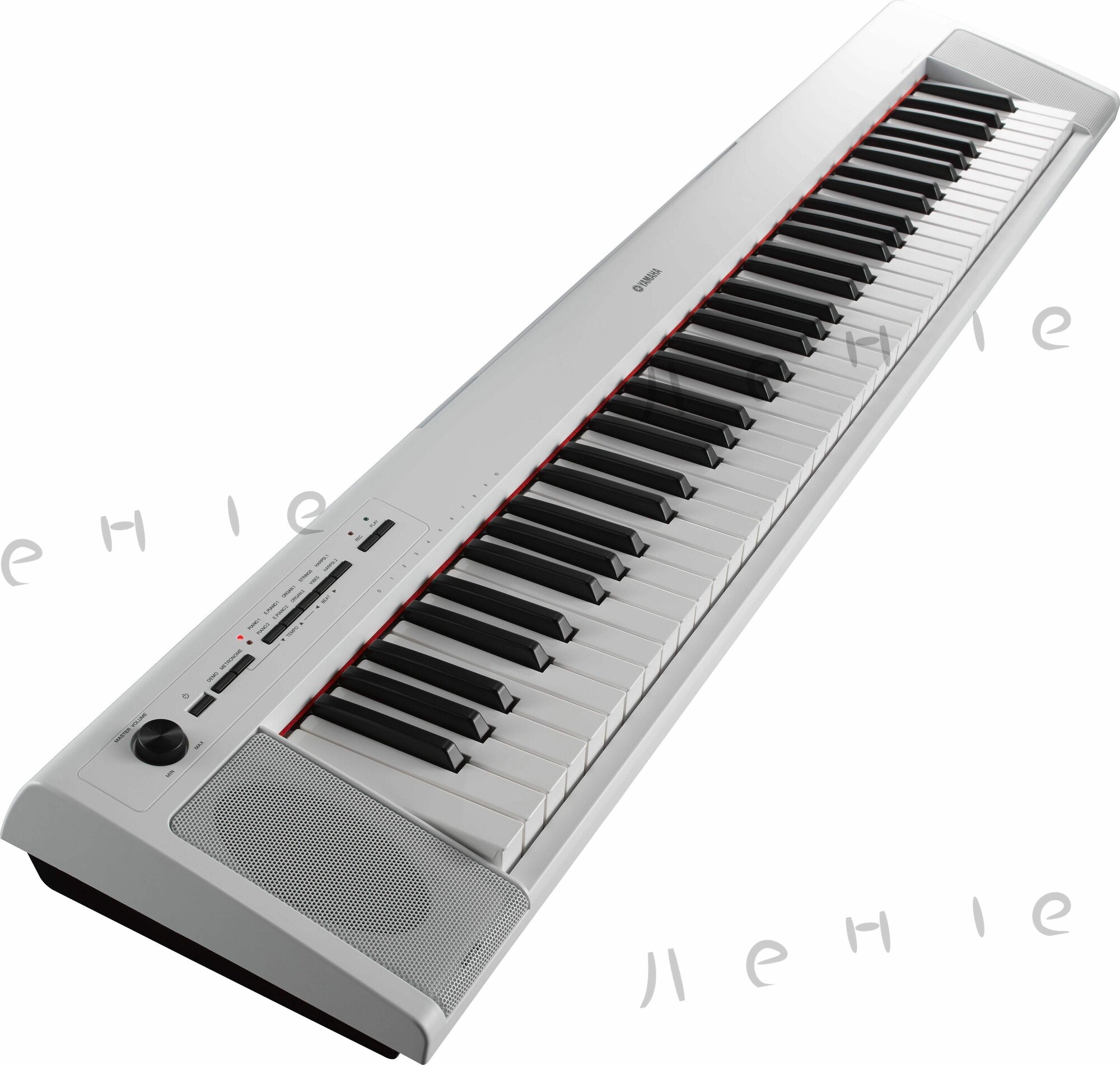 YAMAHA представляет собой компактное цифровое пианино в легком и компактном корпусе. Пианино имеет минимальный набор органов управления, при этом давая возможность насладиться звучанием лучших тембров пианино Yamaha. Клавиатура инструмента имеет 76 клавиш, клавиатура пианино динамическая. Особенностью инструмента является обновленное, улучшенное звучание тембра фортепиано Grand Piano, обновлённый эффект реверберации (Reverb). Полифония составляет 64 голоса.